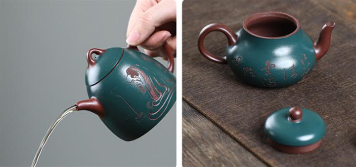 紫砂茶壺全手工刻繪原礦黑泥四方弧棱看世界杯買紫砂壺泡茶喝pot3698