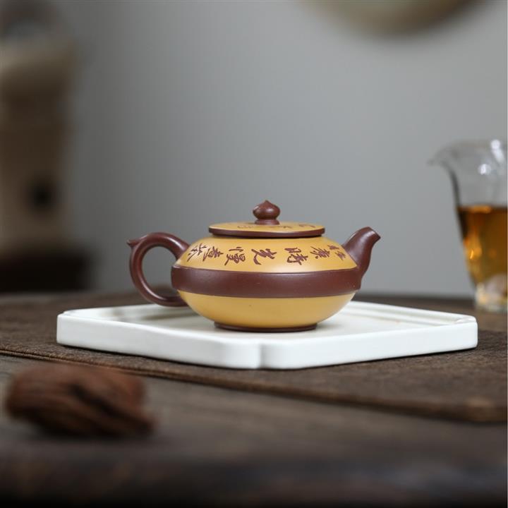 【作品介紹】此款壺形線條流暢,壺把,壺嘴,壺身壹氣呵成栩栩如生,是收藏把玩的好壺,泥料色澤古樸典雅,日久使用,漸露鋒芒,養成變化快,溫潤莊重,用其泡茶,使用的年代久,壺身就溫潤,泡出來的茶湯也就醇郁芳馨。