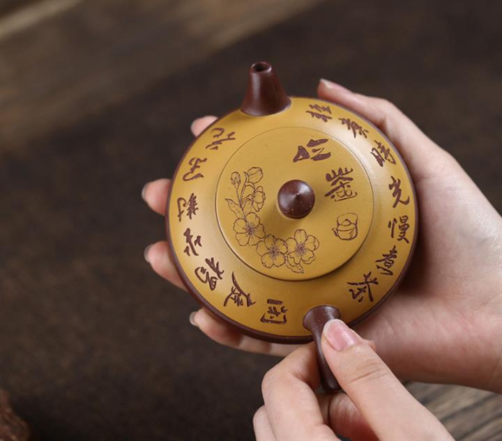 【泥料特點】砂土氣重,似淳實農民,日久使用,漸露鋒芒,養成變化,溫潤莊重。紫砂是壹種雙重氣孔結構的多孔性材質,氣孔微細,密度高。用紫砂壺沏茶,不失原味,且香不渙散,得茶之真香真味。紫砂使用越久,壺身色澤越發光亮照人,氣韻溫雅。紫砂壺長久使用器身會因撫摸擦拭,變得越發溫潤光澤。