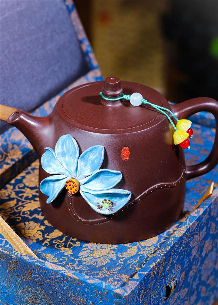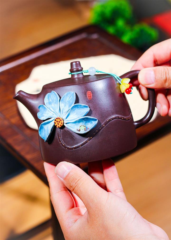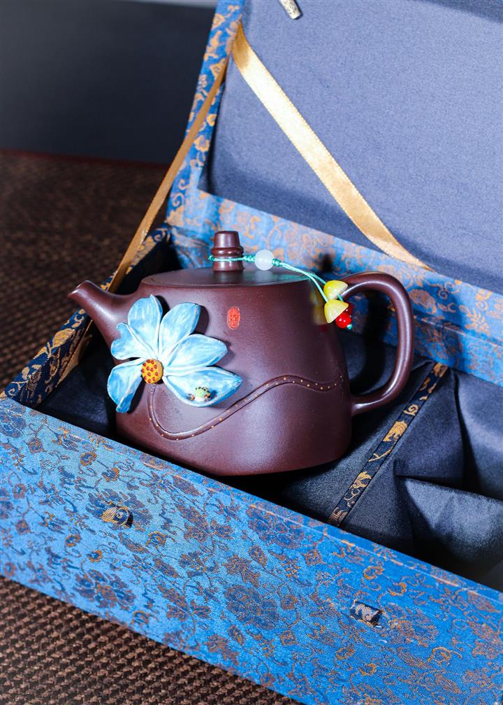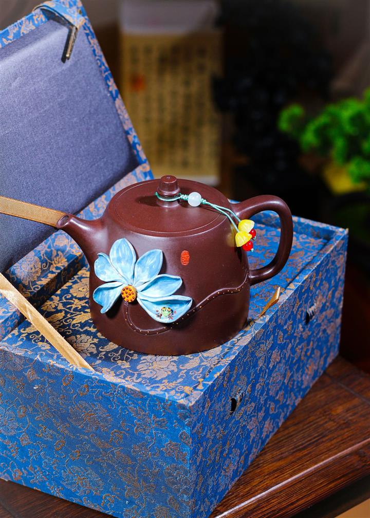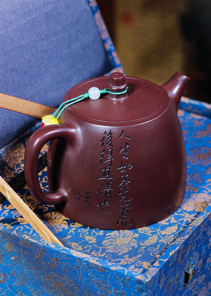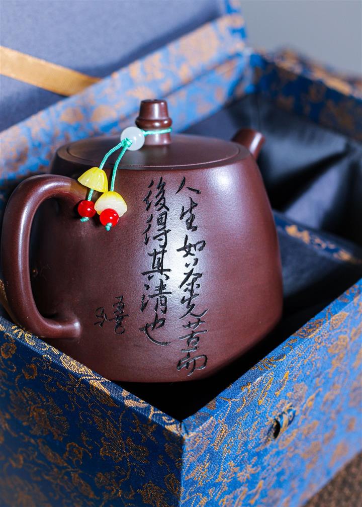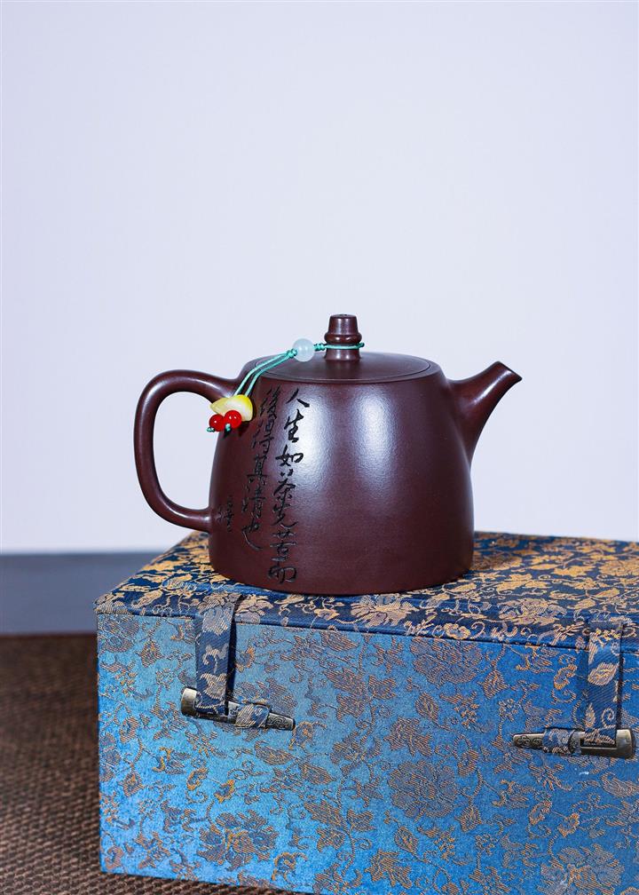【泥料特點】砂土氣重,似淳實農民,日久使用,漸露鋒芒,養成變化,溫潤莊重。紫砂是壹種雙重氣孔結構的多孔性材質,氣孔微細,密度高。用紫砂壺沏茶,不失原味,且香不渙散,得茶之真香真味。紫砂使用越久,壺身色澤越發光亮照人,氣韻溫雅。紫砂壺長久使用器身會因撫摸擦拭,變得越發溫潤光澤。