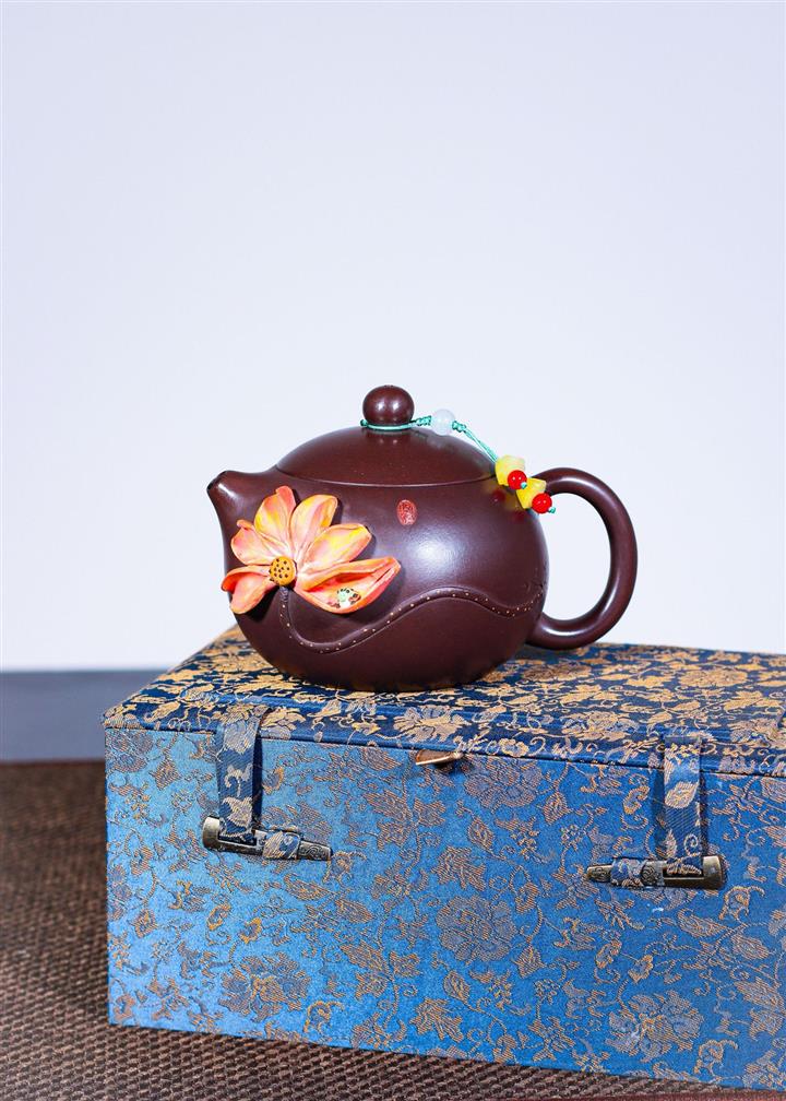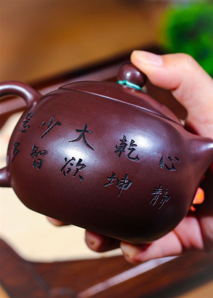 【泥料特點】砂土氣重,似淳實農民,日久使用,漸露鋒芒,養成變化,溫潤莊重。紫砂是壹種雙重氣孔結構的多孔性材質,氣孔微細,密度高。用紫砂壺沏茶,不失原味,且香不渙散,得茶之真香真味。紫砂使用越久,壺身色澤越發光亮照人,氣韻溫雅。紫砂壺長久使用器身會因撫摸擦拭,變得越發溫潤光澤。