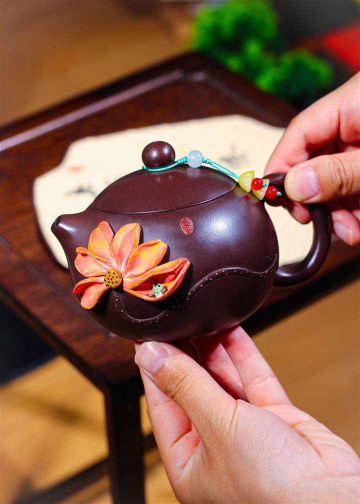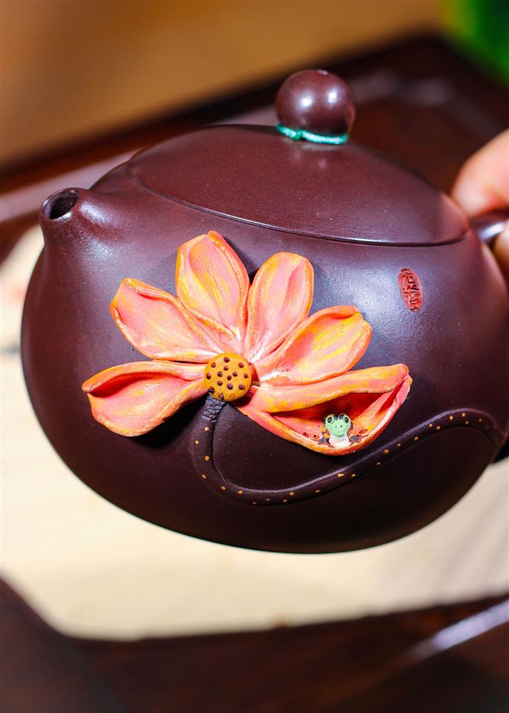 350cc原礦老紫泥蛙趣荷花西施茶壺POT8608