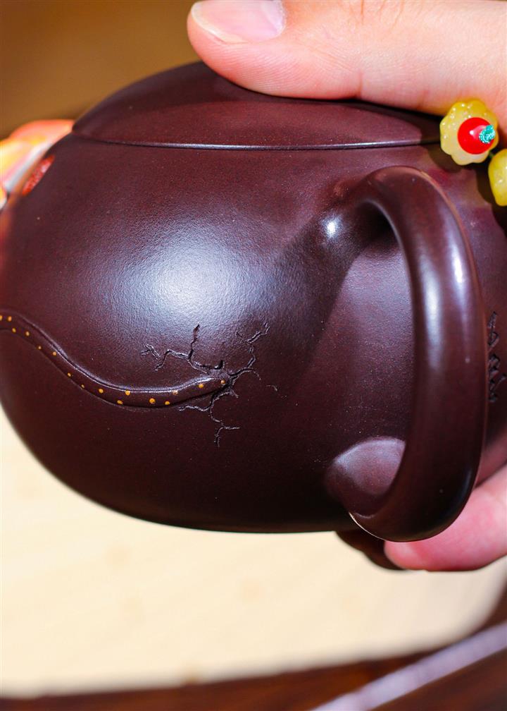 原礦老紫泥金蟾圈紐紫砂壺POT4659
