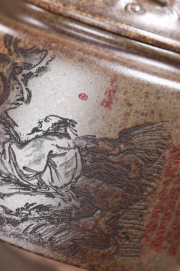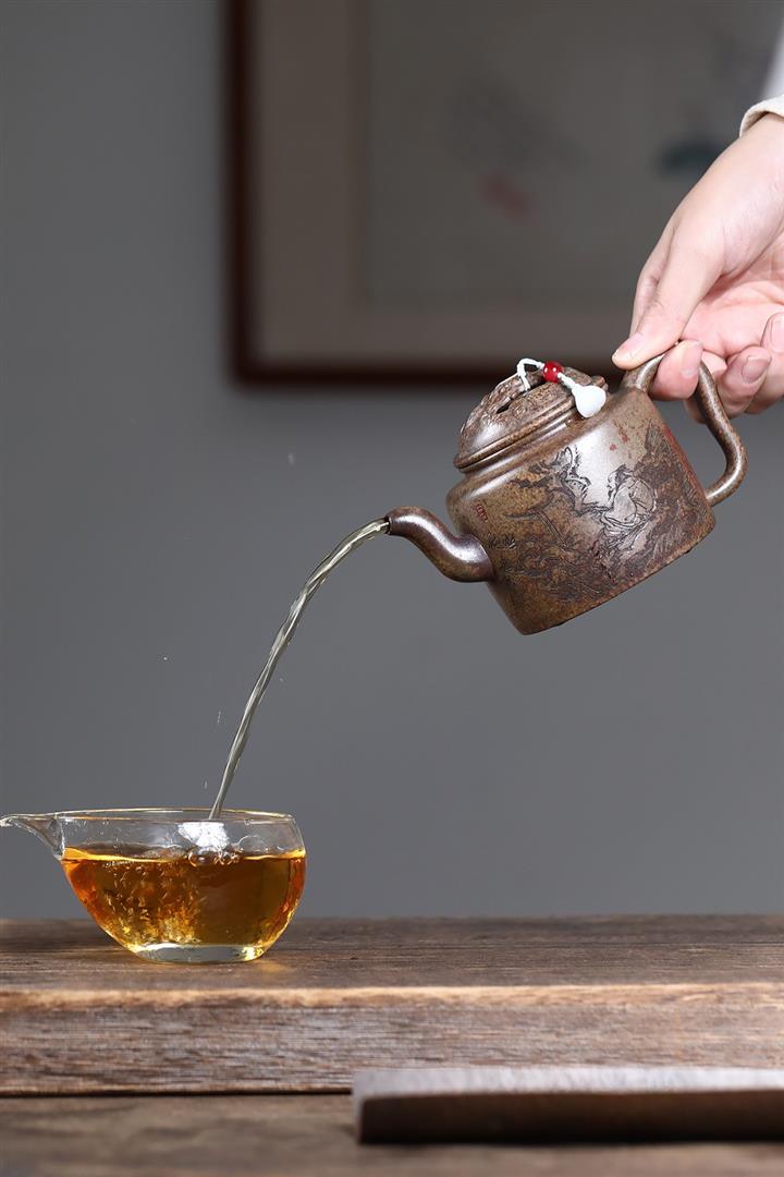 手工紫砂壺圍爐喜上枝頭茶壺POT4256