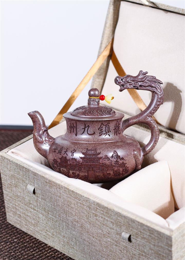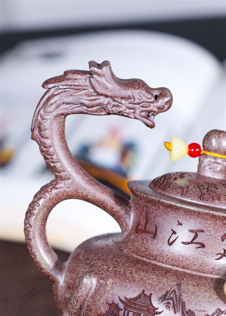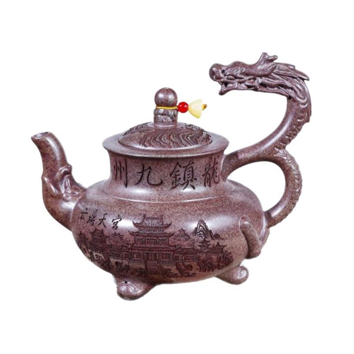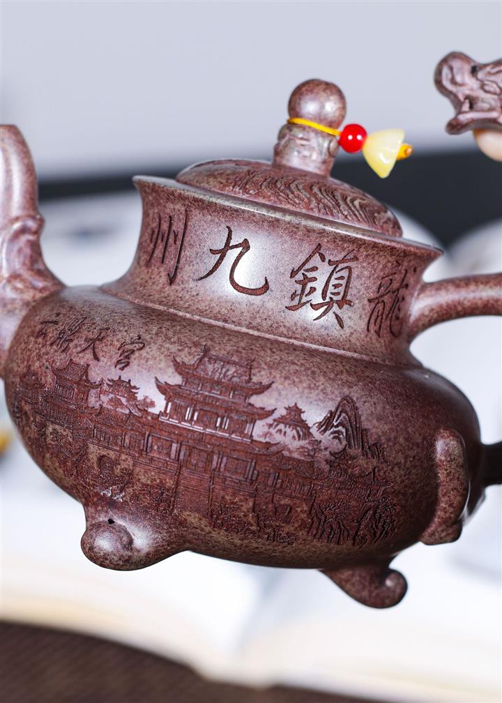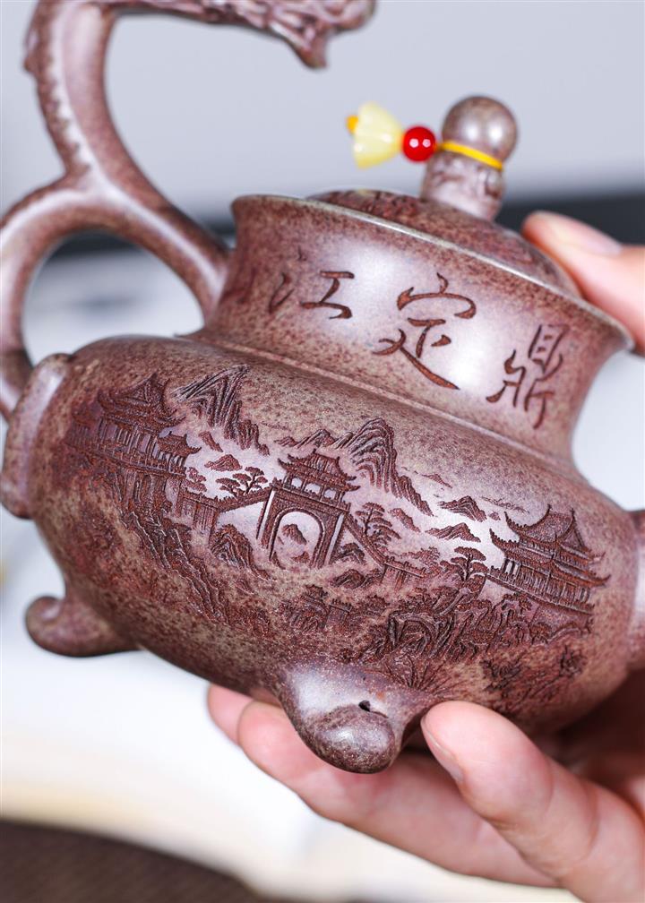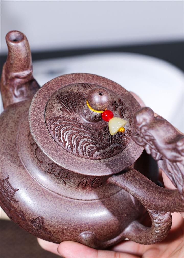 原礦紅降坡滿刻松鼠漢瓦茶壺POT7163