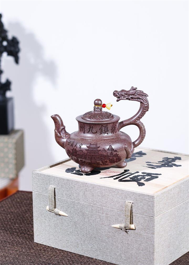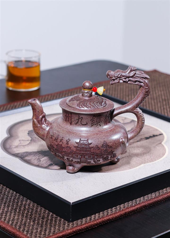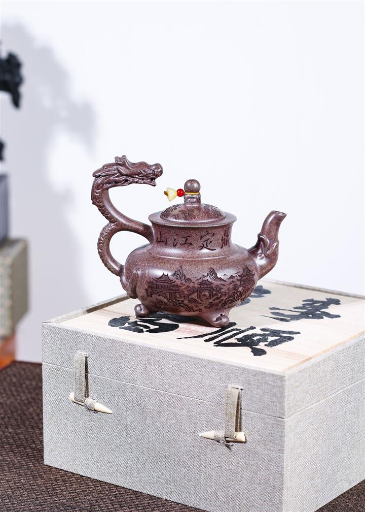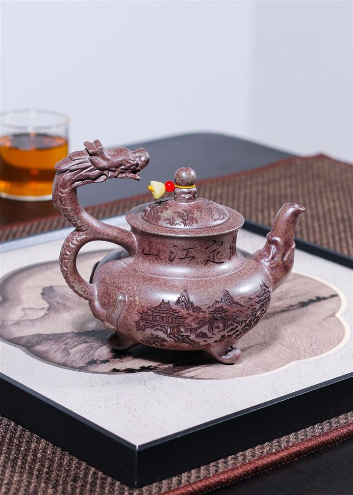 原礦墨綠泥山水牛蓋茶壺POT7165