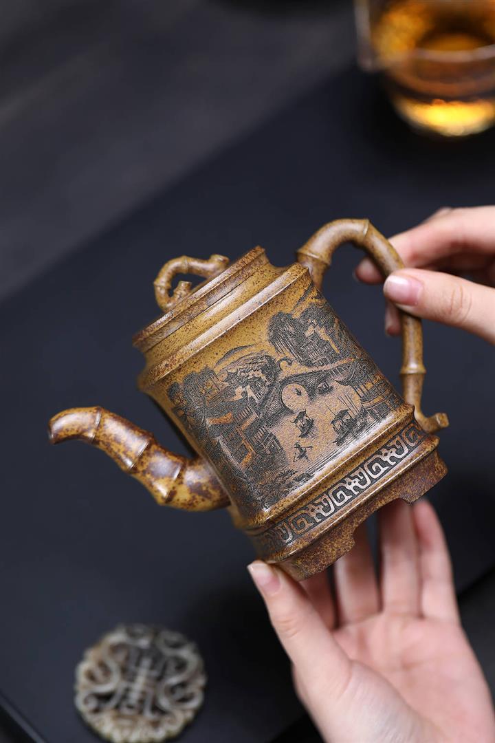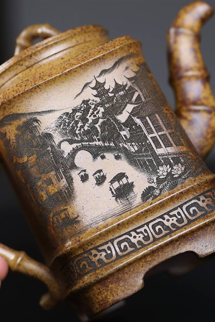 原礦紫泥竹韻聽風竹影茶壺POT7308