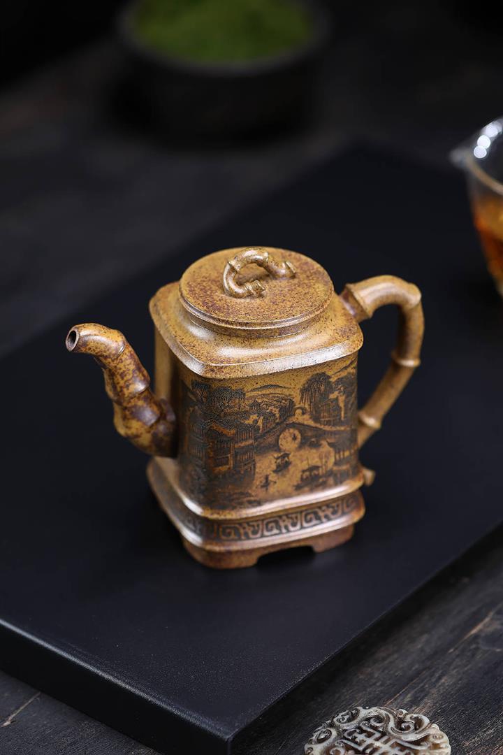 300cc原礦龍骨金砂特高溫四方竹段茶壺POT8636