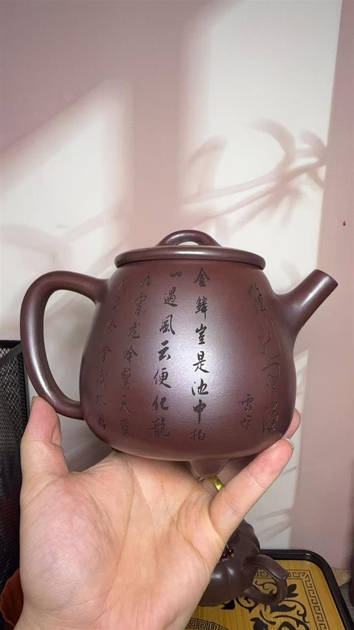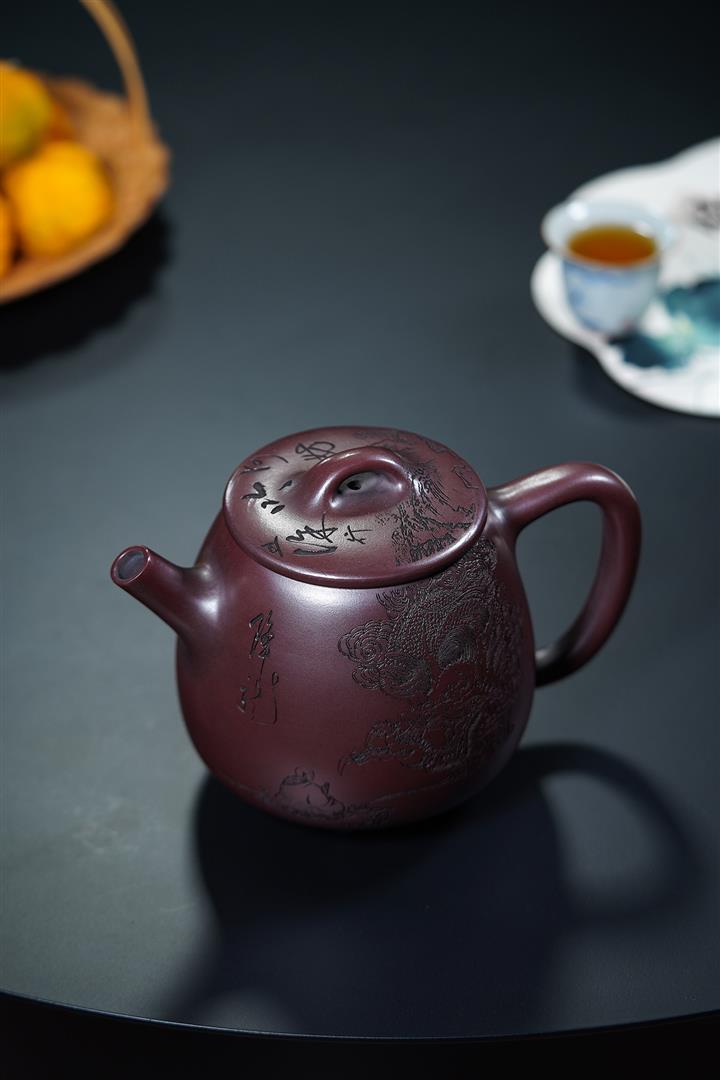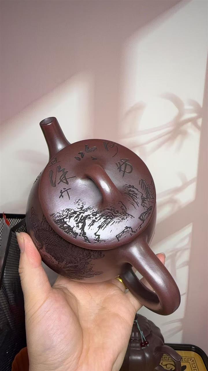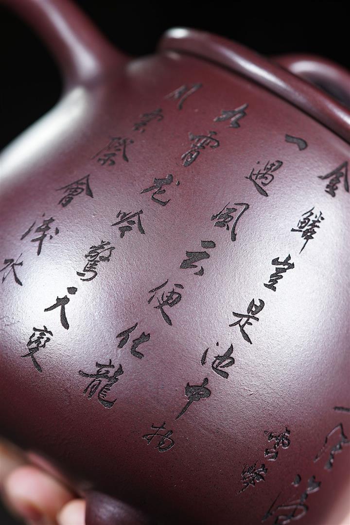原礦綠泥刻繪漢瓦紫砂壺POT5438