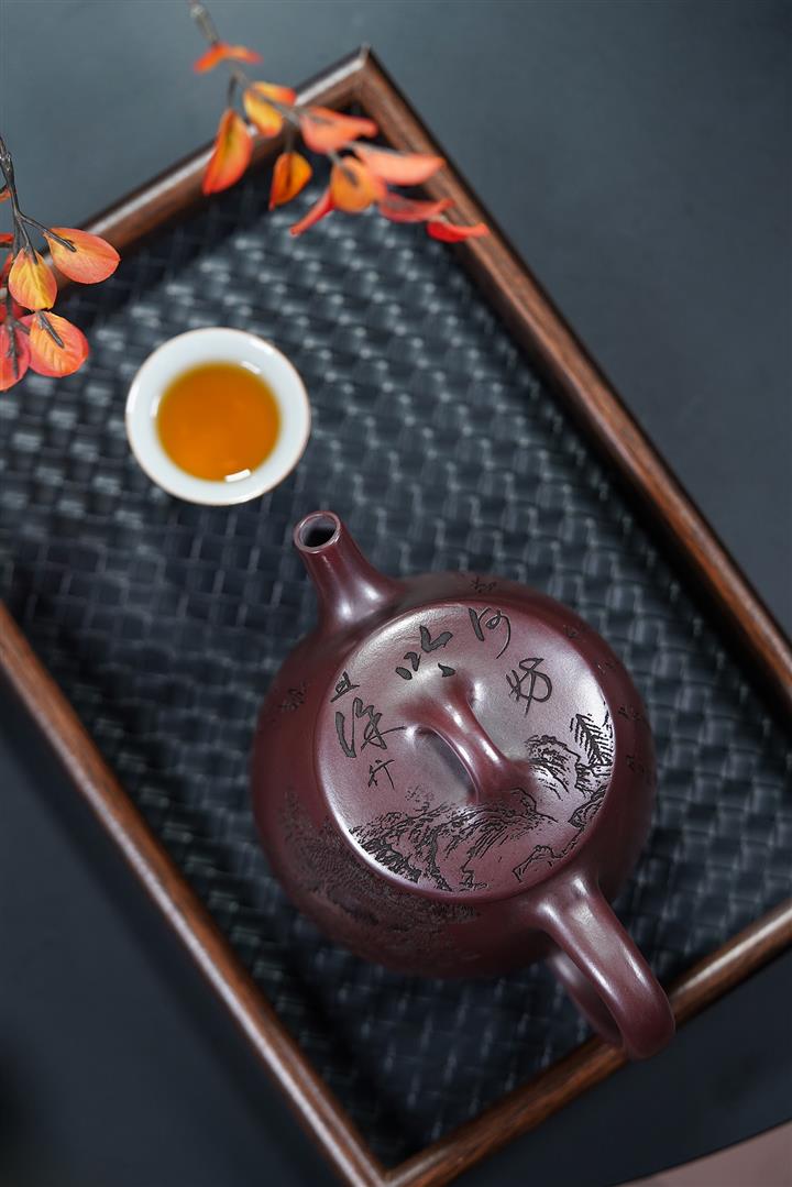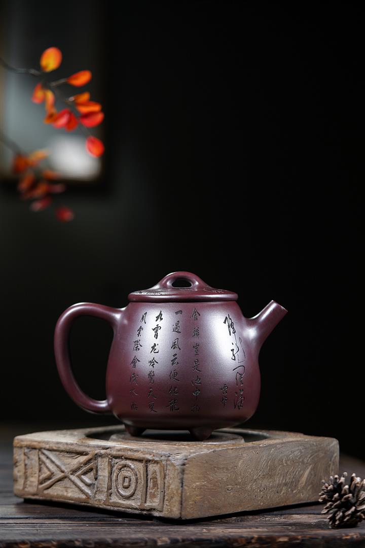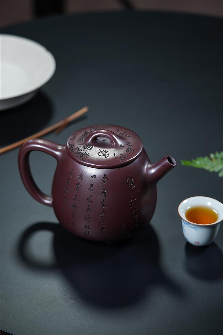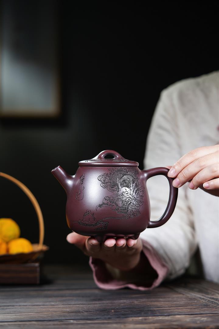 原礦綠泥刻繪漢瓦紫砂壺POT5438