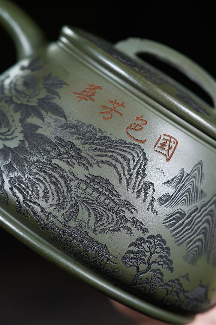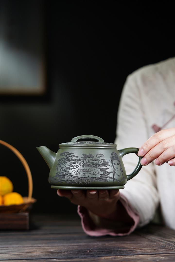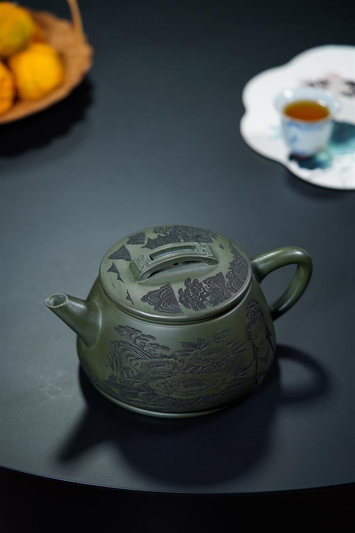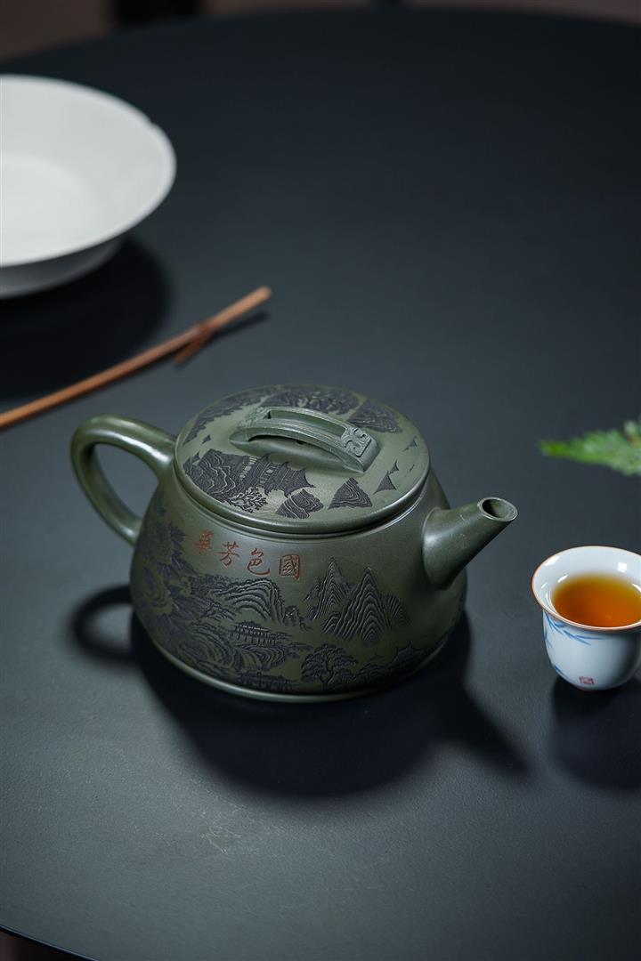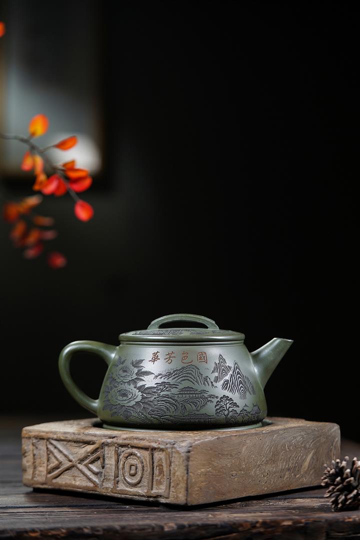 550cc原礦綠泥國色天香寒江茶壺POT8237