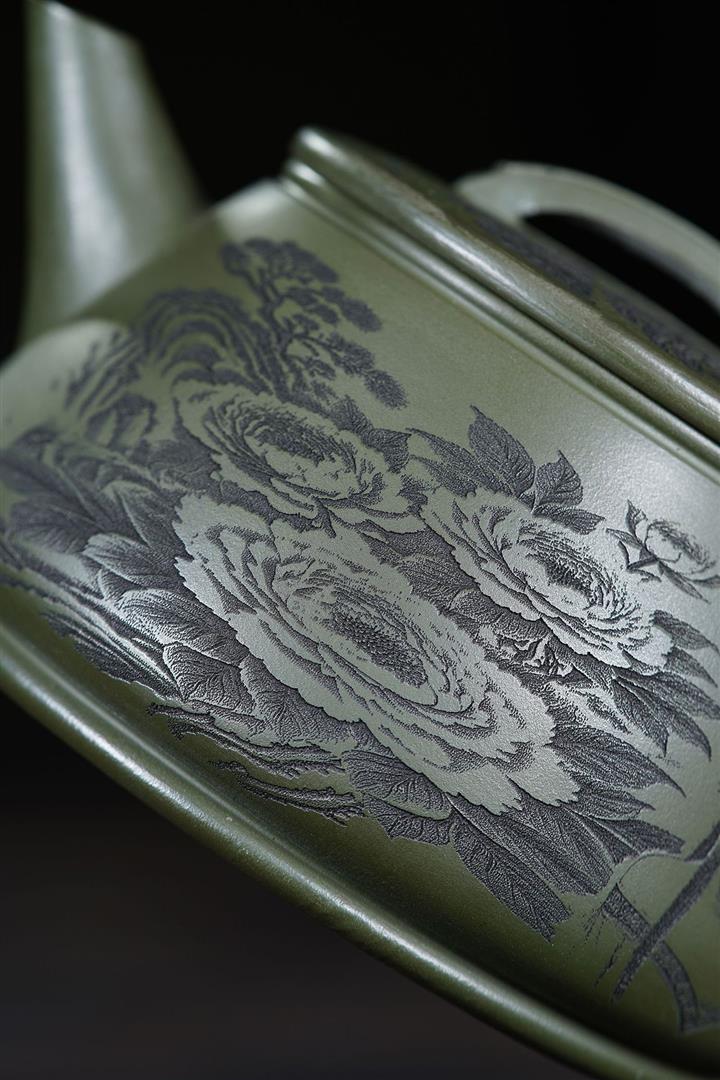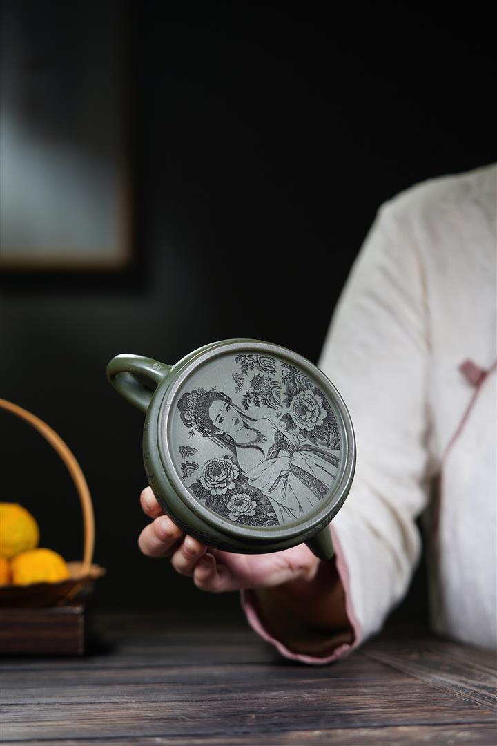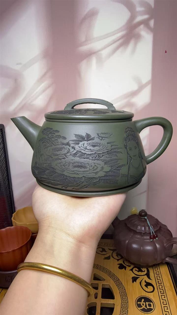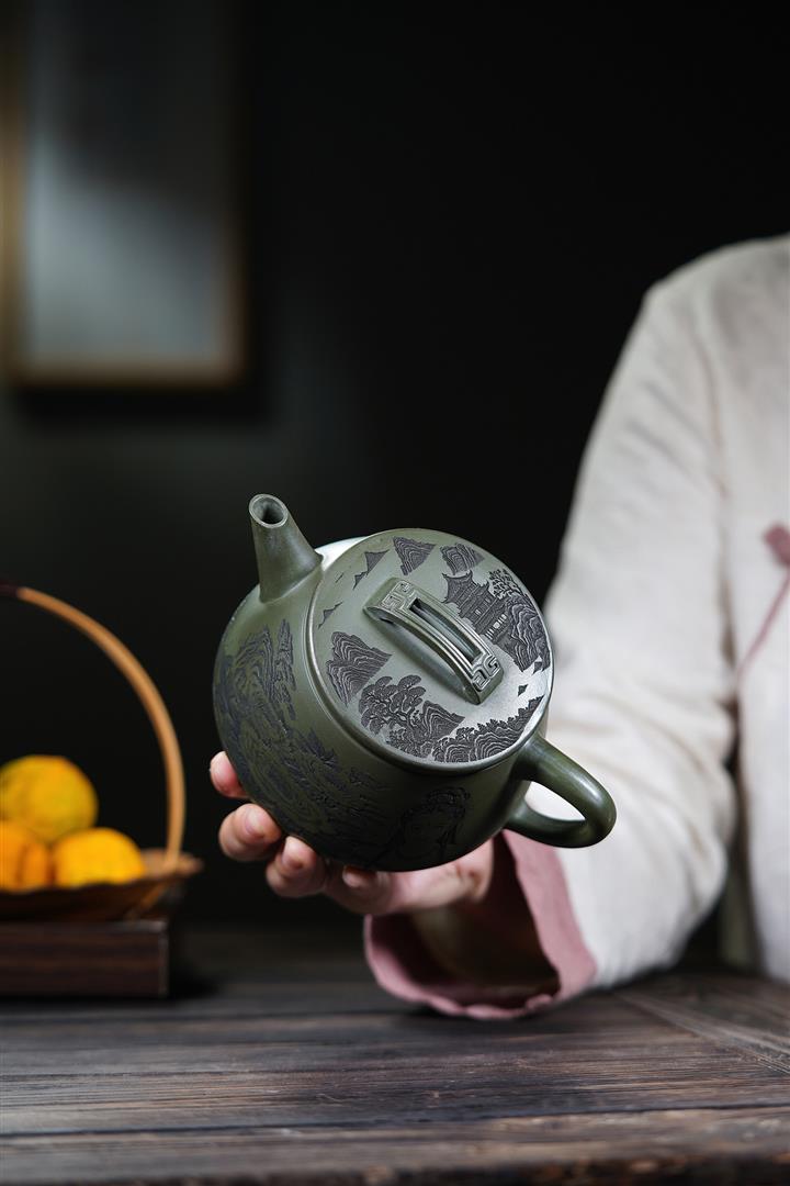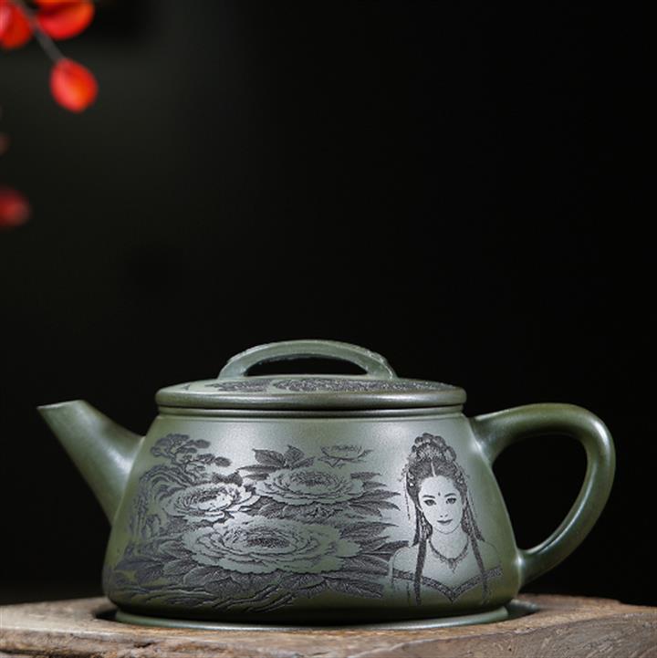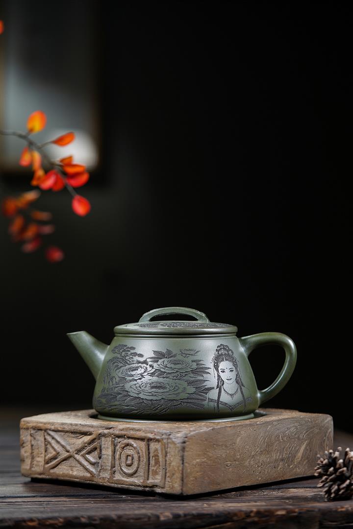 550cc原礦綠泥國色天香寒江茶壺POT8237
