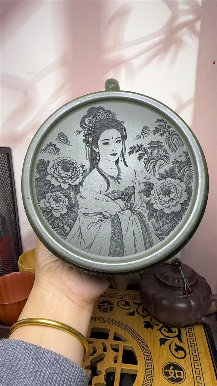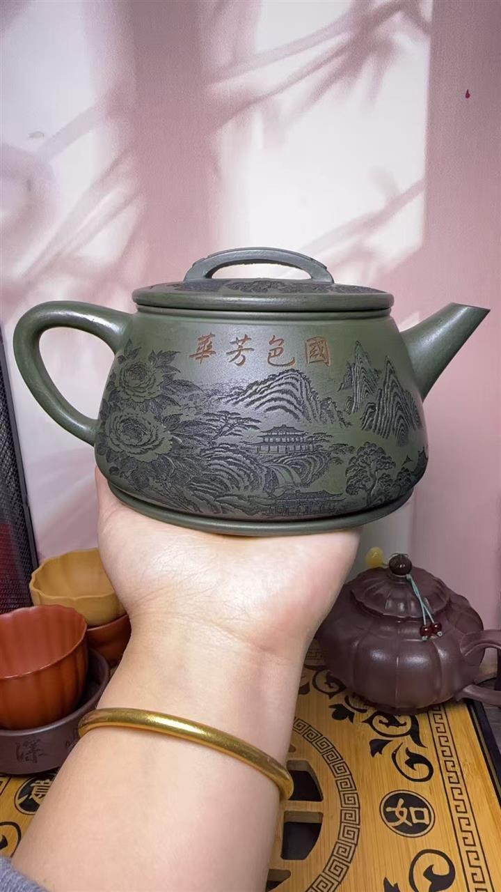 400cc原礦優質綠泥春山疊翠秦權壺POT8236
