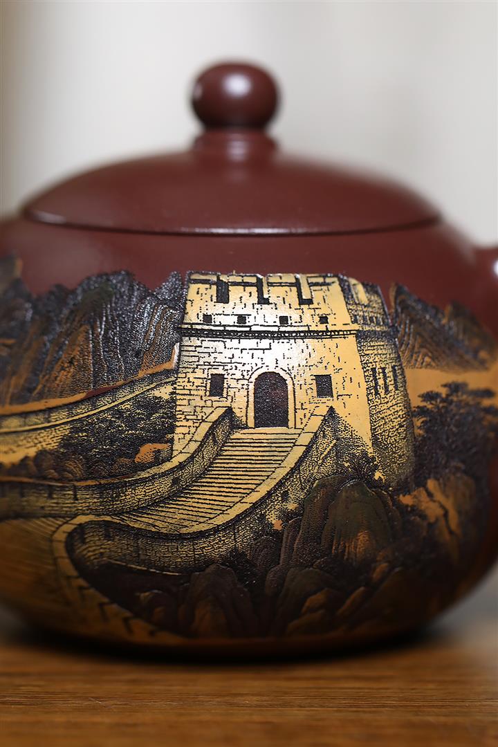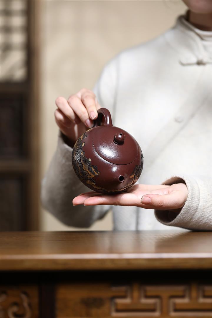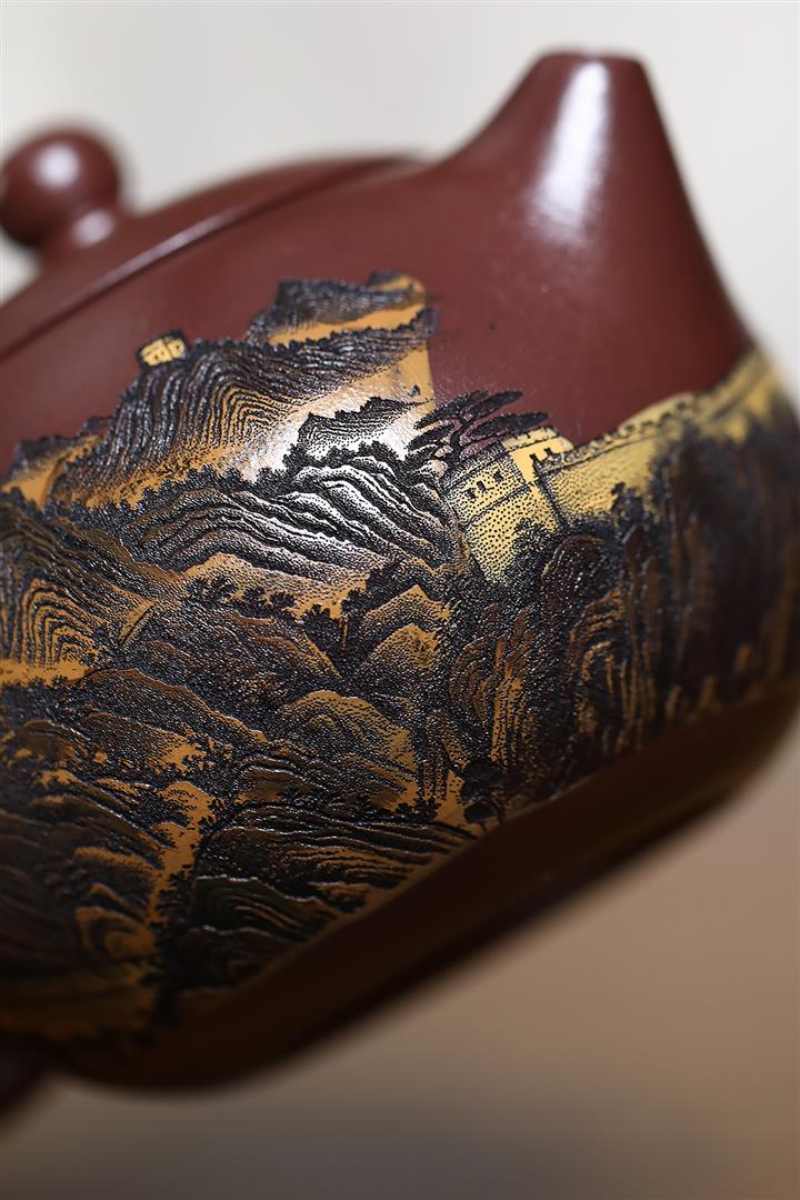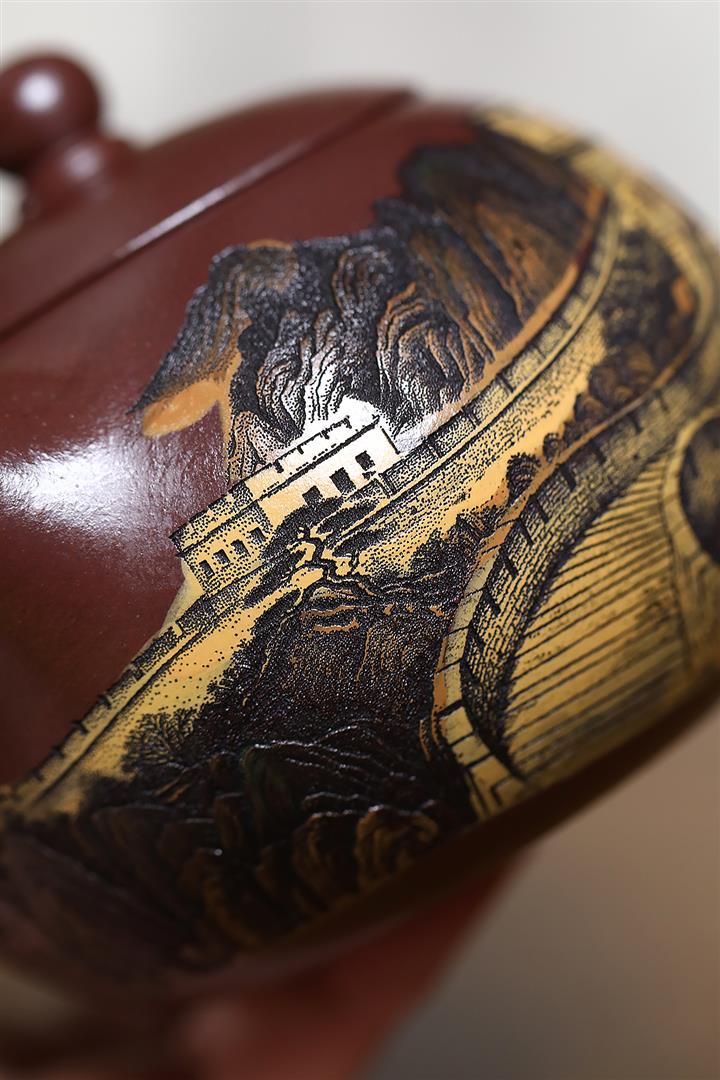 捂灰朱泥琺瑯彩燒曼殊茶壺POT7457