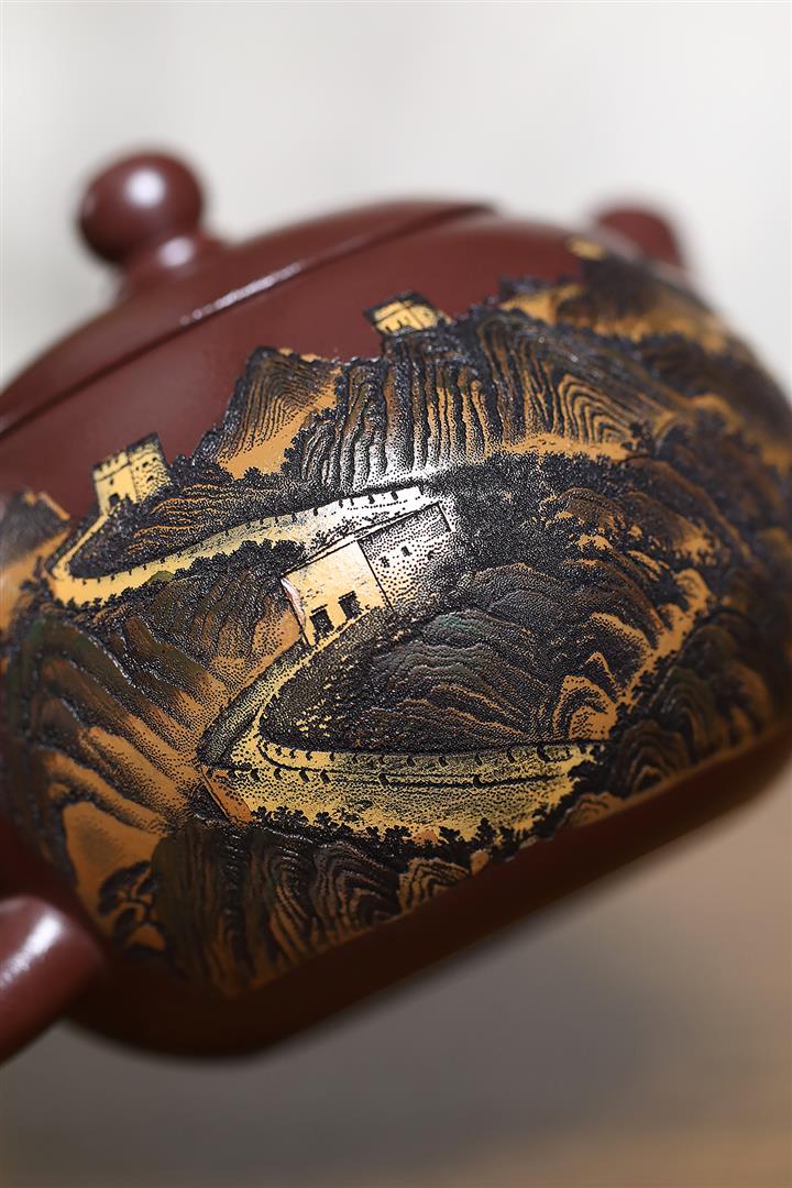捂灰朱泥琺瑯彩燒桑扁茶壺POT7456