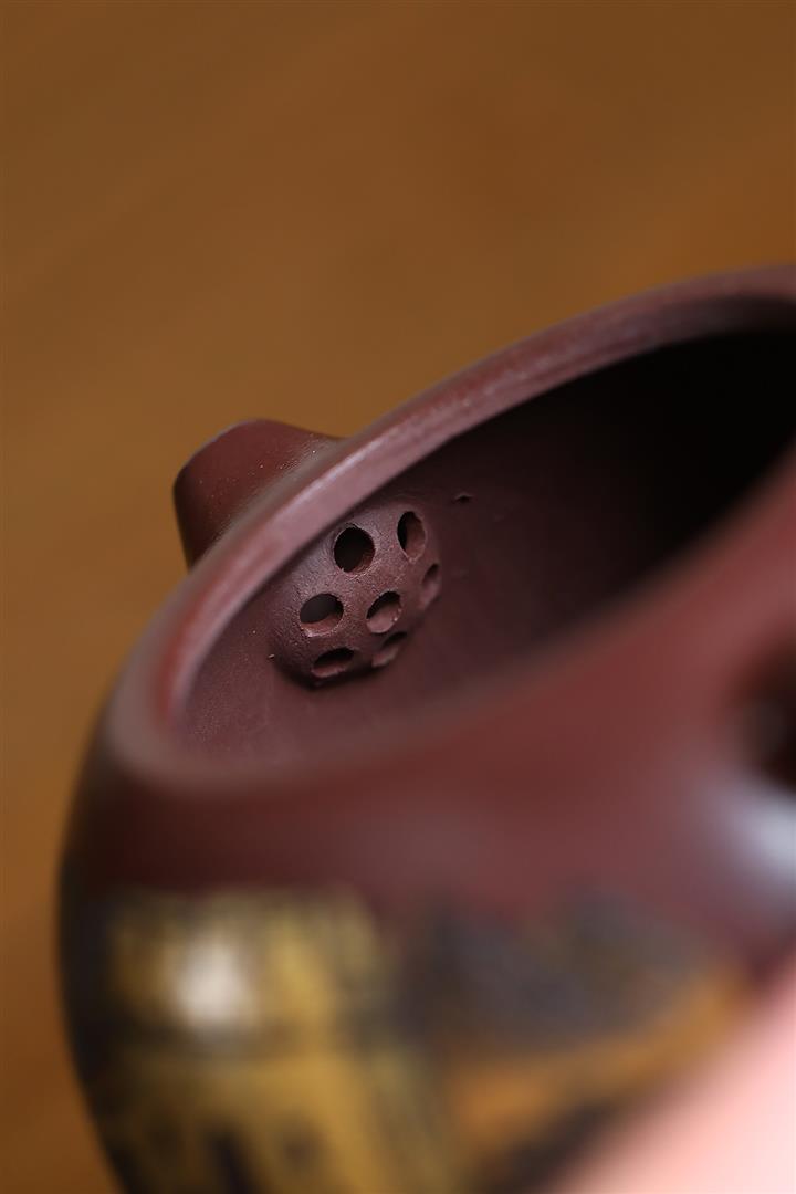 捂灰朱泥琺瑯彩燒虛扁茶壺POT7453