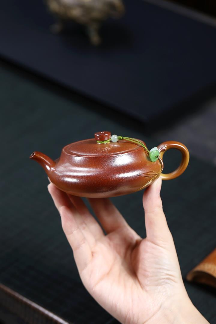 【作品介紹】此款壺形線條流暢,壺把,壺嘴,壺身壹氣呵成栩栩如生,是收藏把玩的好壺,泥料色澤古樸典雅,日久使用,漸露鋒芒,養成變化快,溫潤莊重,用其泡茶,使用的年代久,壺身就溫潤,泡出來的茶湯也就醇郁芳馨。