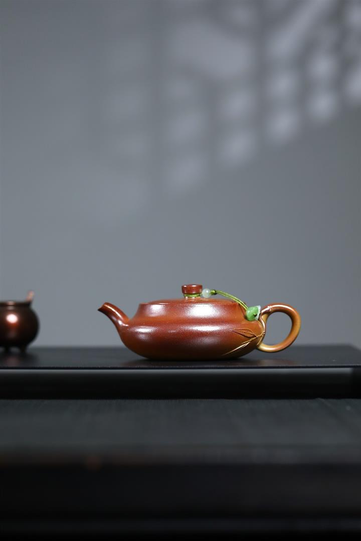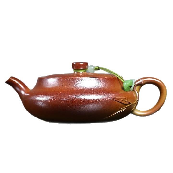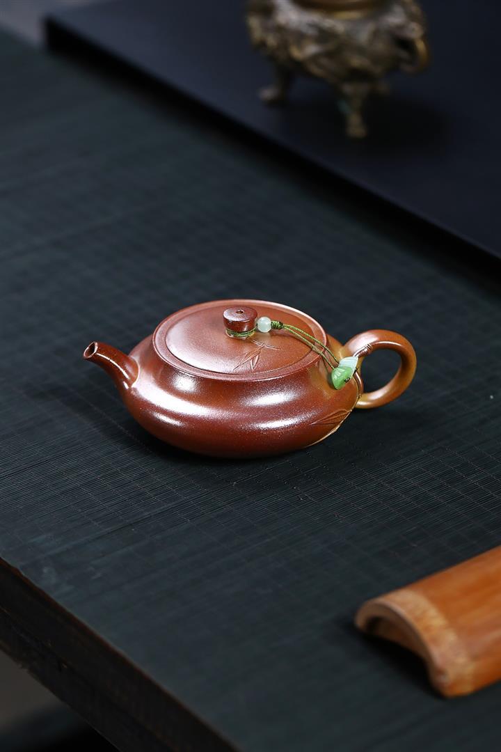 原礦陳腐百目老紫泥竹影扁晨茶壺POT4394