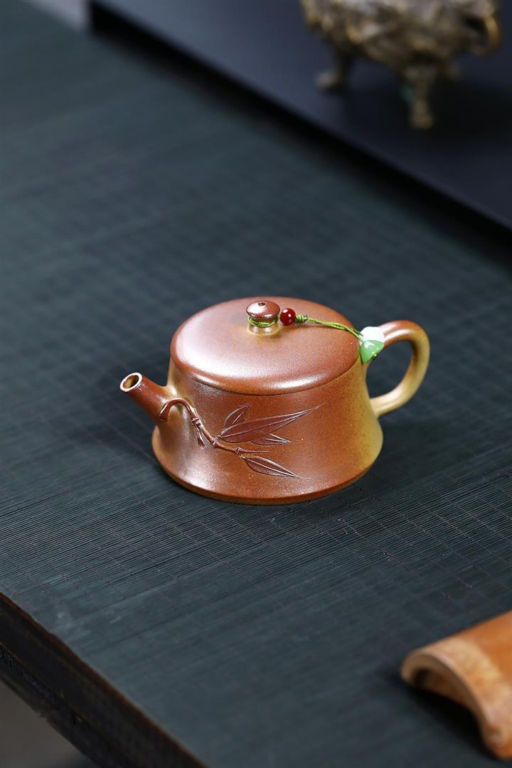 150cc原礦黃金段泥火焰燒金竹焰礎石瓢茶壺POT8762