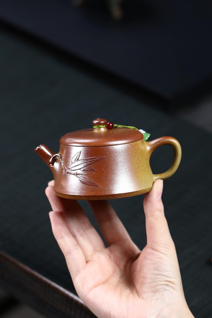 【作品介紹】此款壺形線條流暢,壺把,壺嘴,壺身壹氣呵成栩栩如生,是收藏把玩的好壺,泥料色澤古樸典雅,日久使用,漸露鋒芒,養成變化快,溫潤莊重,用其泡茶,使用的年代久,壺身就溫潤,泡出來的茶湯也就醇郁芳馨。
