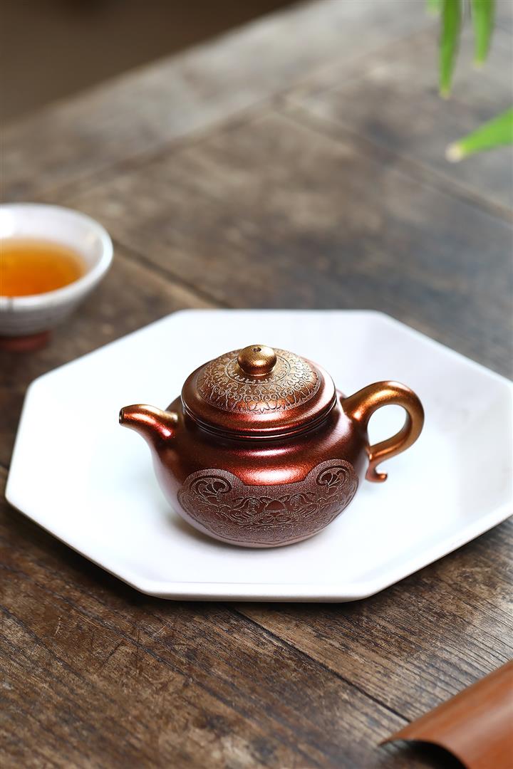 【泥料特點】砂土氣重,似淳實農民,日久使用,漸露鋒芒,養成變化,溫潤莊重。紫砂是壹種雙重氣孔結構的多孔性材質,氣孔微細,密度高。用紫砂壺沏茶,不失原味,且香不渙散,得茶之真香真味。紫砂使用越久,壺身色澤越發光亮照人,氣韻溫雅。紫砂壺長久使用器身會因撫摸擦拭,變得越發溫潤光澤。