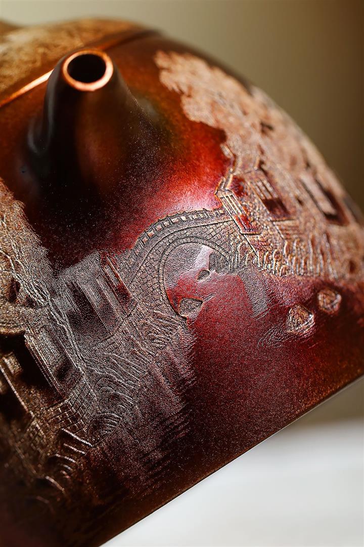 200cc原礦降坡泥柴燒刻字玉婉茶壺POT9012