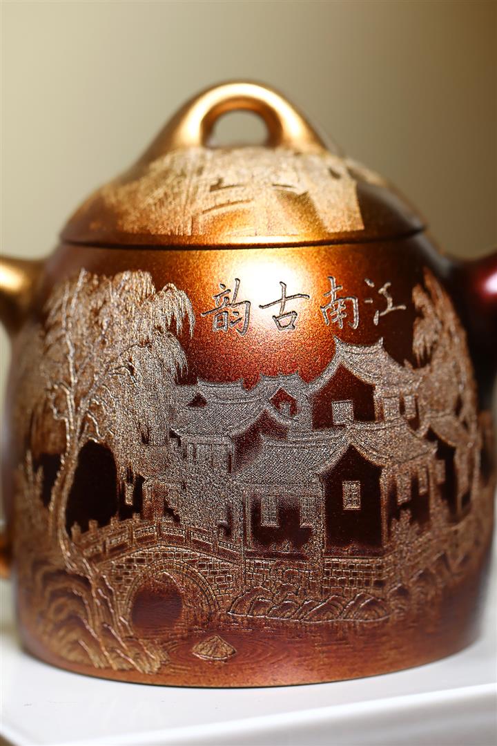 【作品介紹】此款壺形線條流暢,壺把,壺嘴,壺身壹氣呵成栩栩如生,是收藏把玩的好壺,泥料色澤古樸典雅,日久使用,漸露鋒芒,養成變化快,溫潤莊重,用其泡茶,使用的年代久,壺身就溫潤,泡出來的茶湯也就醇郁芳馨。
