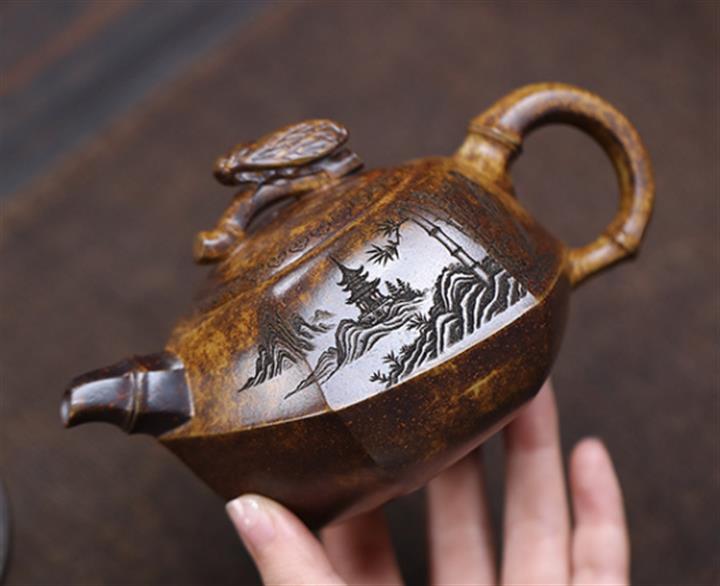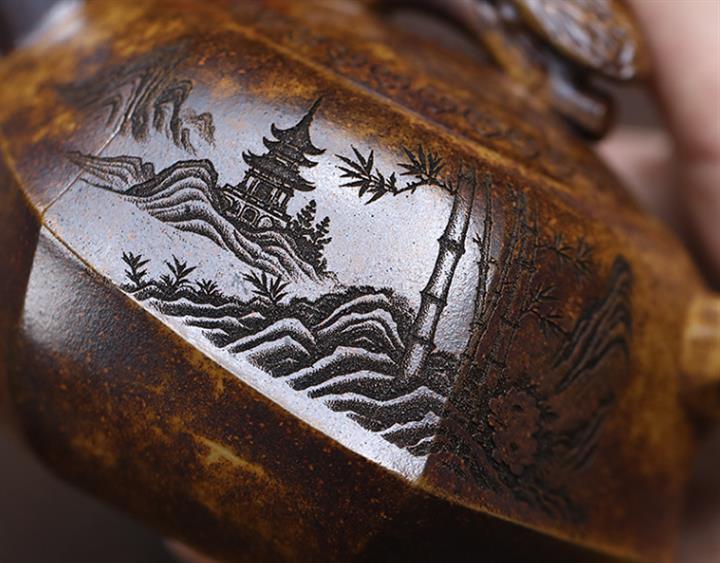 原礦龍血砂手工刻繪福在壺中茶壺POT6845