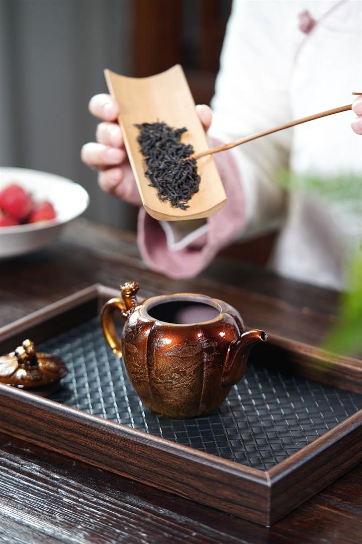 【泥料特點】砂土氣重,似淳實農民,日久使用,漸露鋒芒,養成變化,溫潤莊重。紫砂是壹種雙重氣孔結構的多孔性材質,氣孔微細,密度高。用紫砂壺沏茶,不失原味,且香不渙散,得茶之真香真味。紫砂使用越久,壺身色澤越發光亮照人,氣韻溫雅。紫砂壺長久使用器身會因撫摸擦拭,變得越發溫潤光澤。