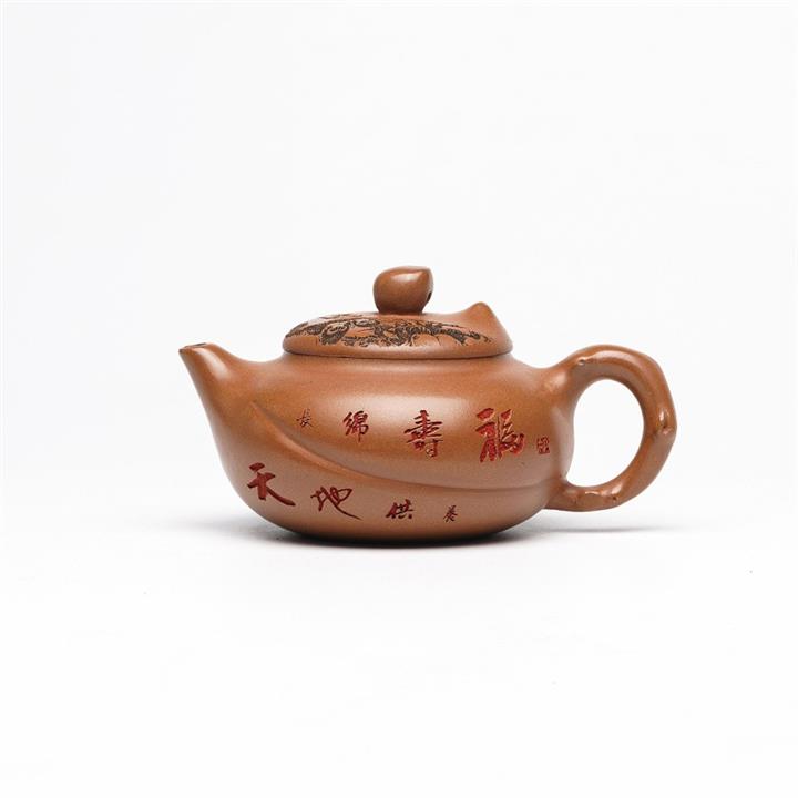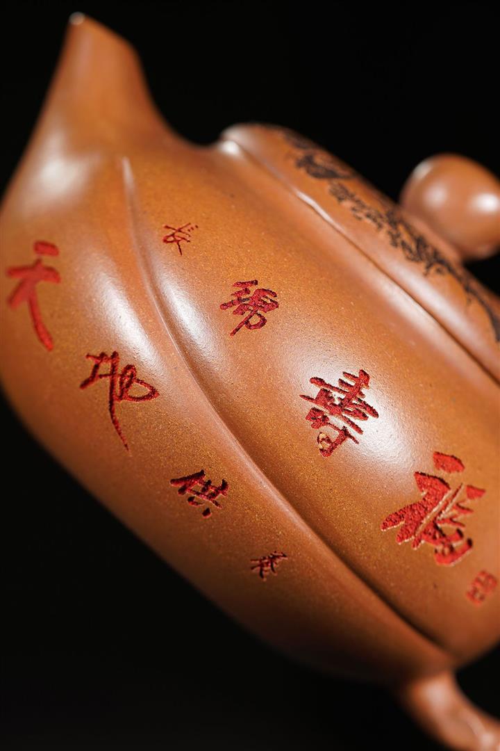原礦大紅袍手工蛇紋鎏金龍紋壺POT6775