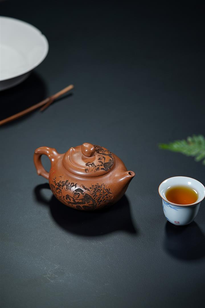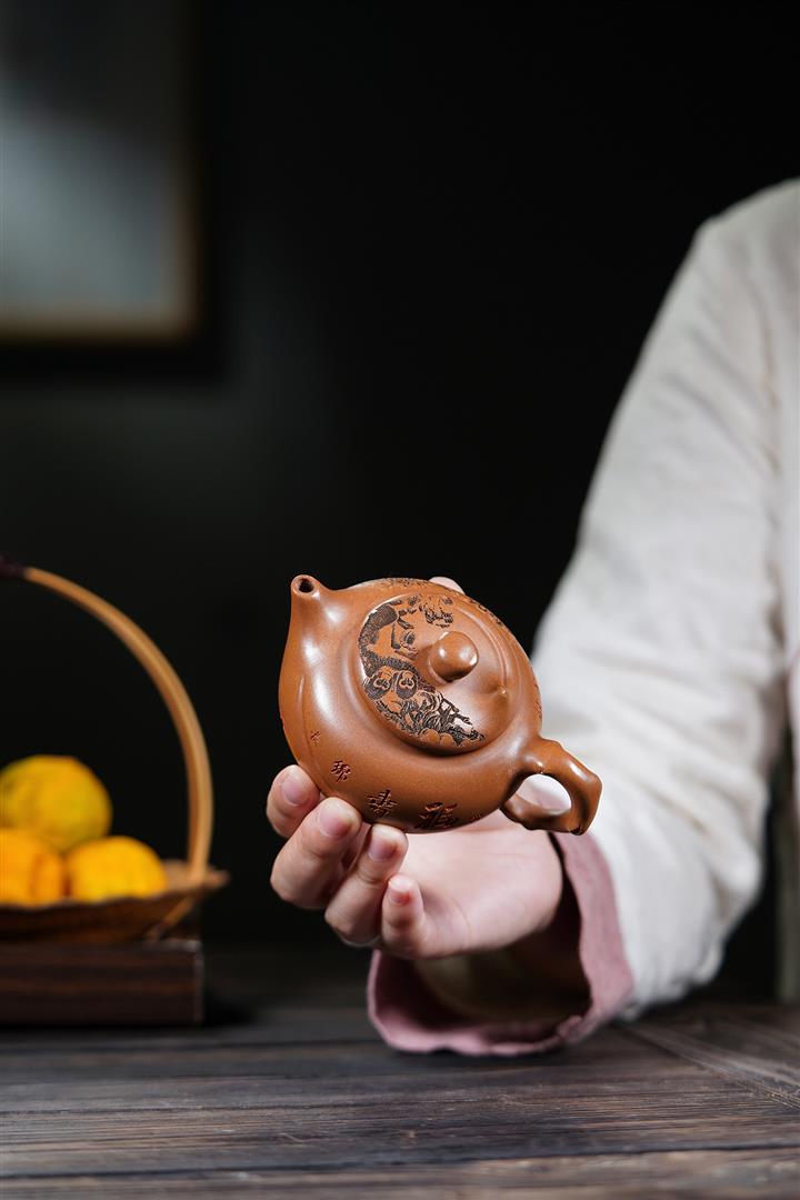 200cc原礦黃段泥靈猴獻瑞茶壺POT8797