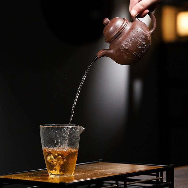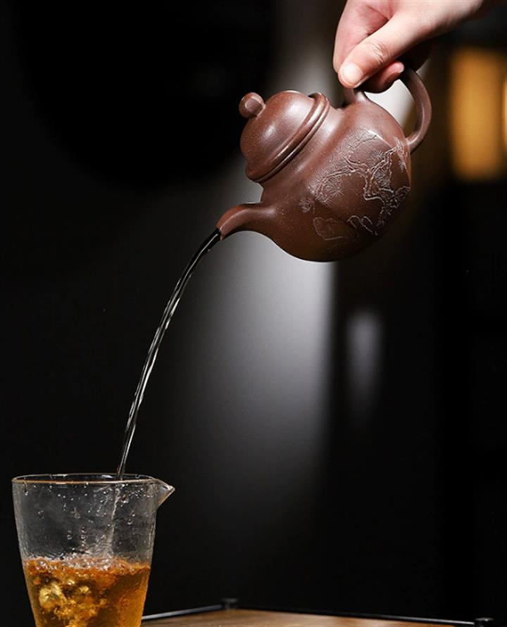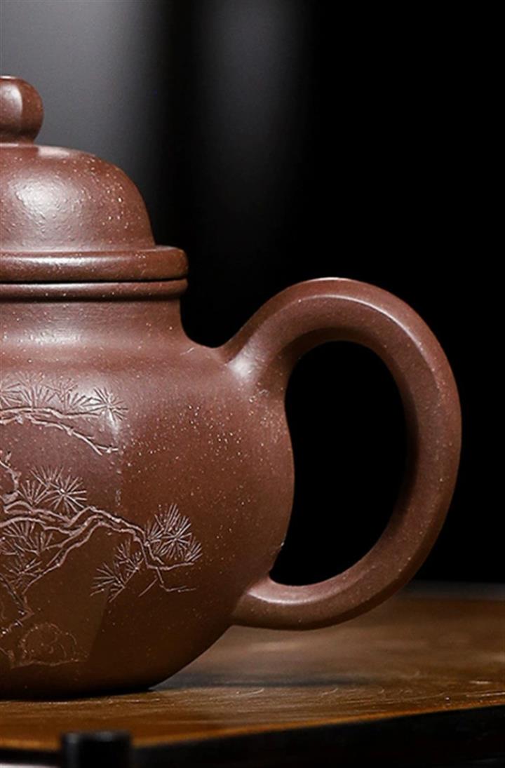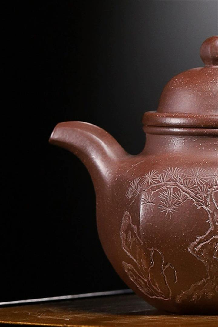 220cc原礦龍血砂刻梅花茶壺POT8902