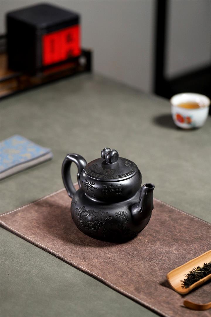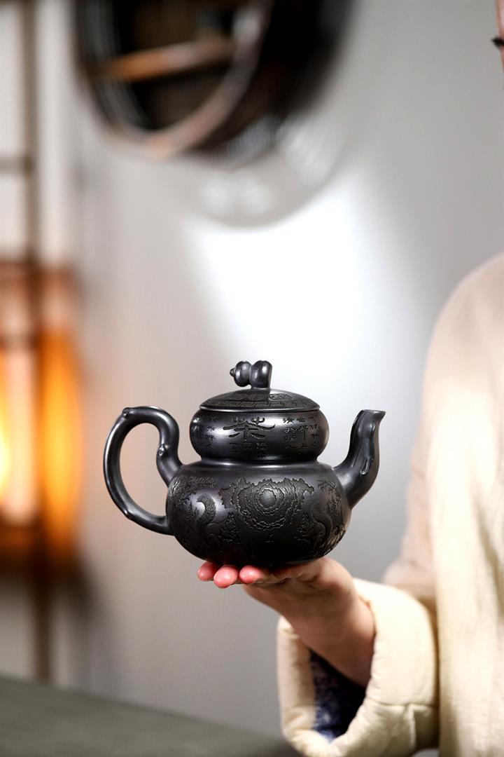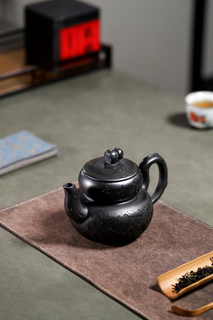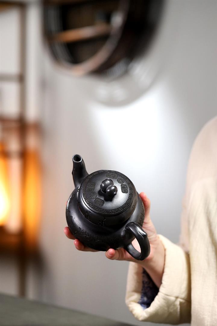【作品介紹】此款壺形線條流暢,壺把,壺嘴,壺身壹氣呵成栩栩如生,是收藏把玩的好壺,泥料色澤古樸典雅,日久使用,漸露鋒芒,養成變化快,溫潤莊重,用其泡茶,使用的年代久,壺身就溫潤,泡出來的茶湯也就醇郁芳馨。