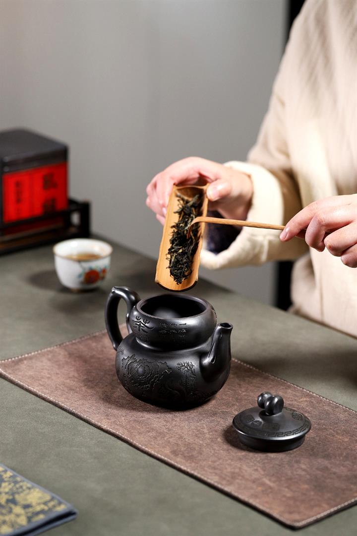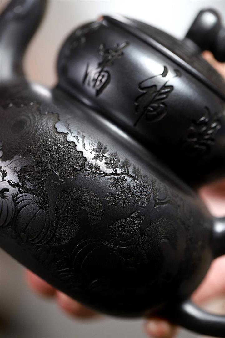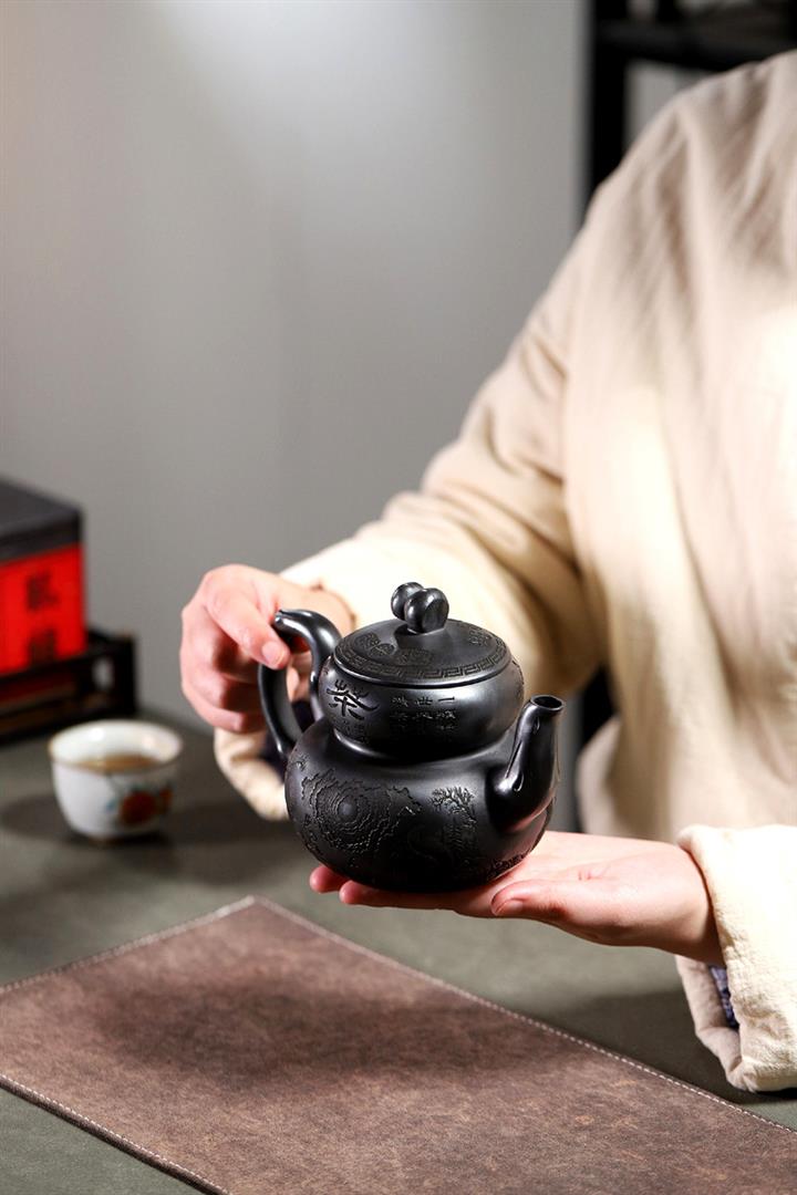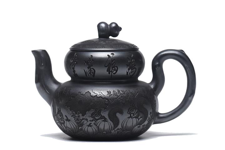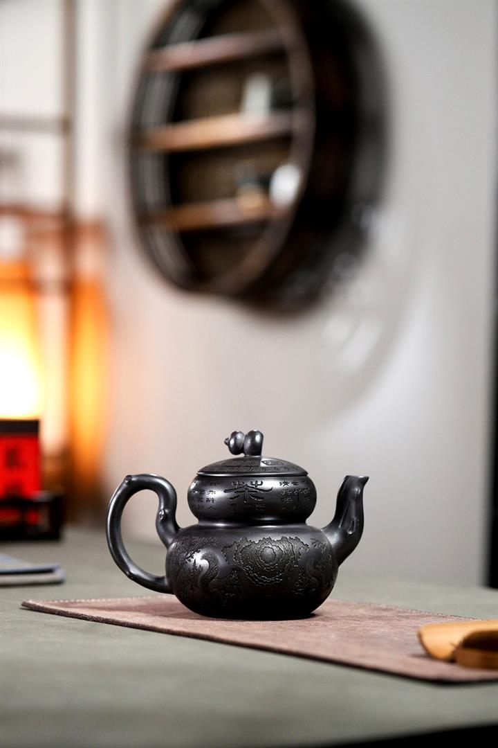 原礦紫泥梅花刻繪珠圓玉潤茶壺POT7397