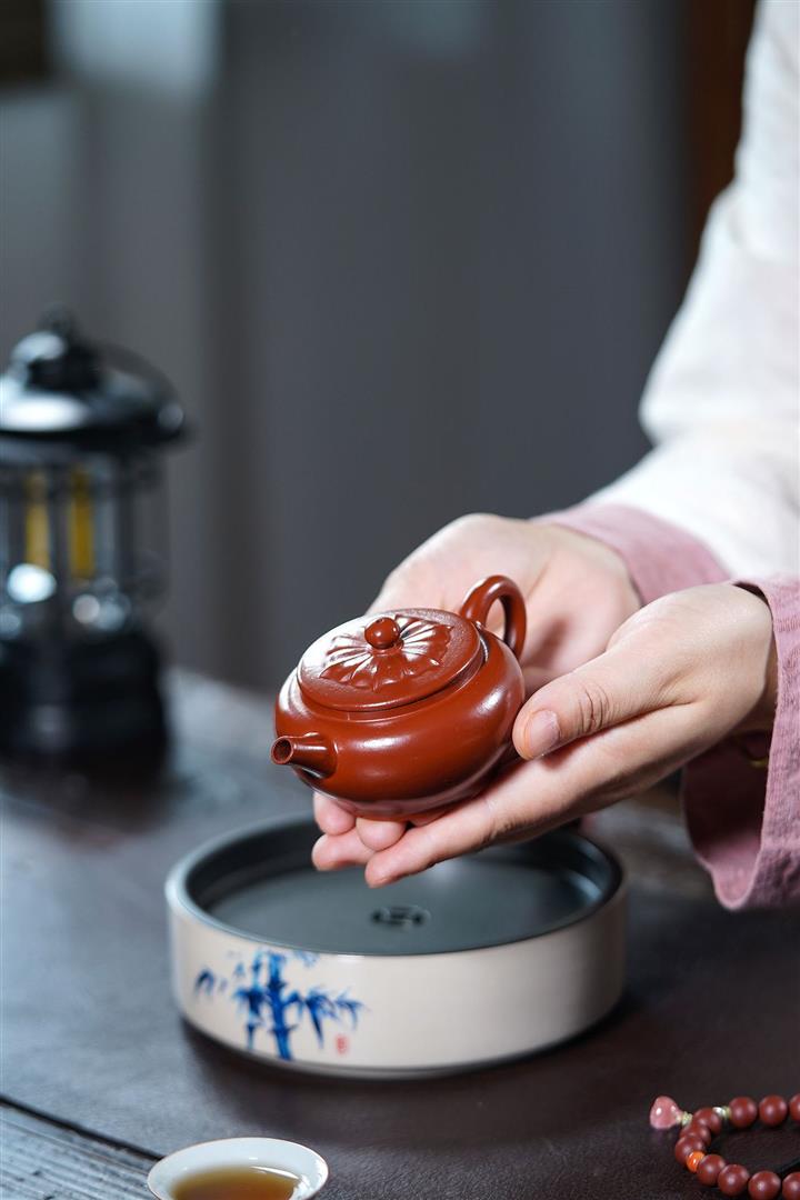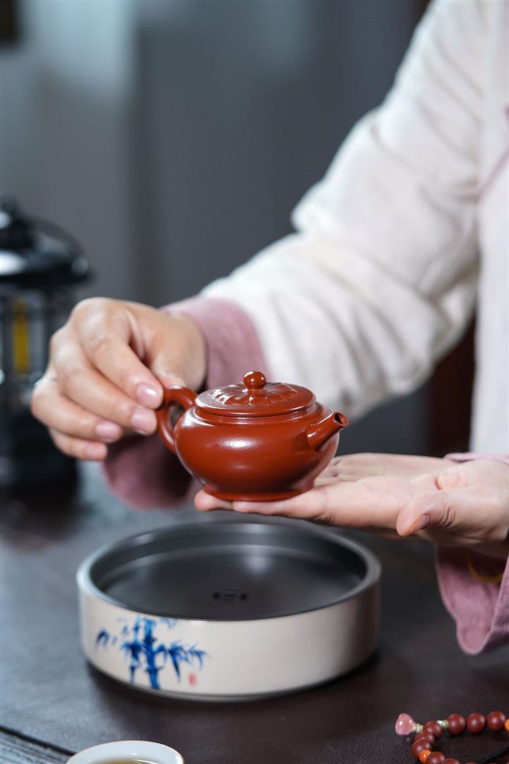 【泥料特點】砂土氣重,似淳實農民,日久使用,漸露鋒芒,養成變化,溫潤莊重。紫砂是壹種雙重氣孔結構的多孔性材質,氣孔微細,密度高。用紫砂壺沏茶,不失原味,且香不渙散,得茶之真香真味。紫砂使用越久,壺身色澤越發光亮照人,氣韻溫雅。紫砂壺長久使用器身會因撫摸擦拭,變得越發溫潤光澤。