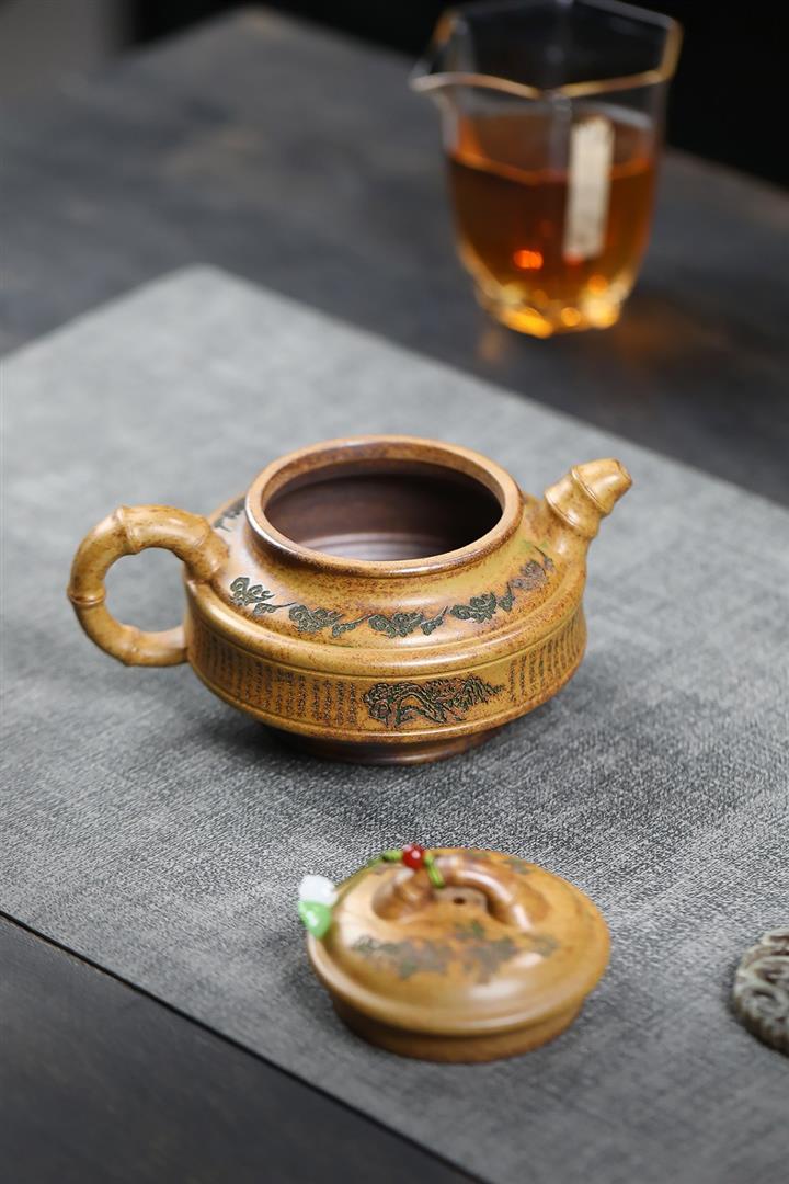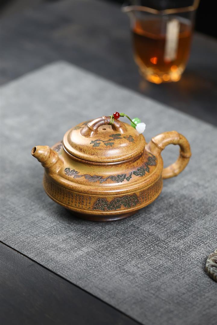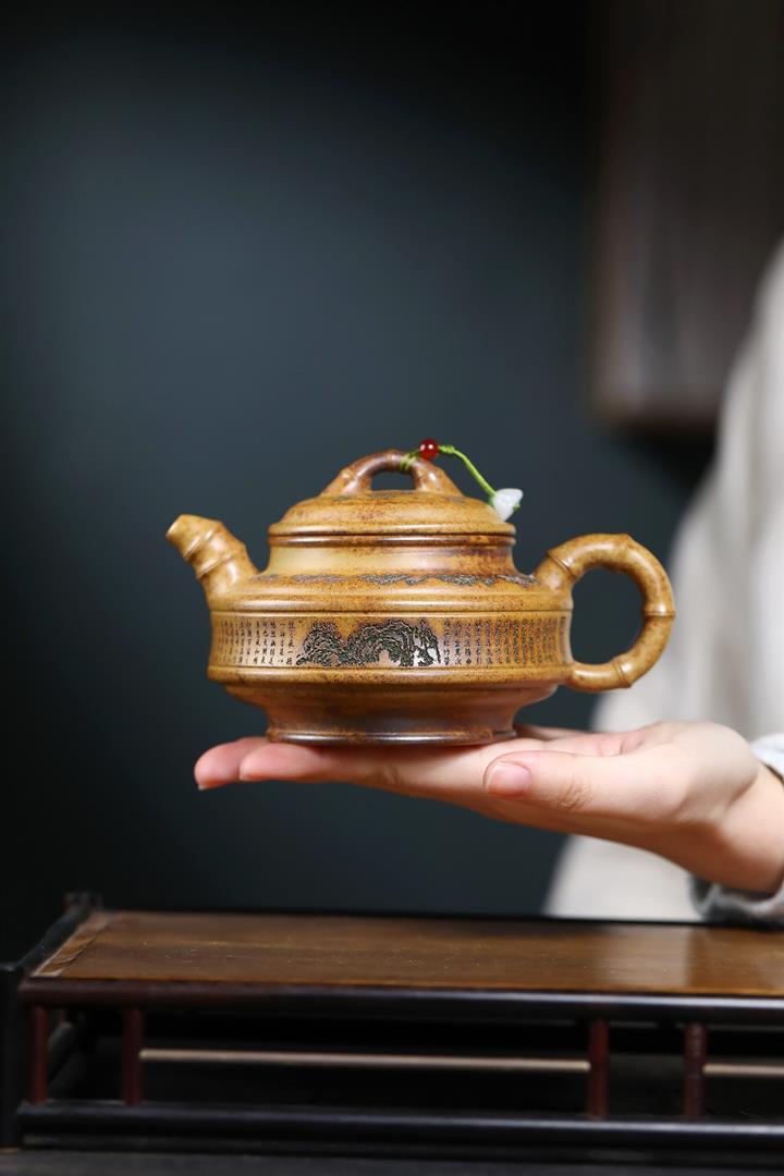 【作品介紹】此款壺形線條流暢,壺把,壺嘴,壺身壹氣呵成栩栩如生,是收藏把玩的好壺,泥料色澤古樸典雅,日久使用,漸露鋒芒,養成變化快,溫潤莊重,用其泡茶,使用的年代久,壺身就溫潤,泡出來的茶湯也就醇郁芳馨。