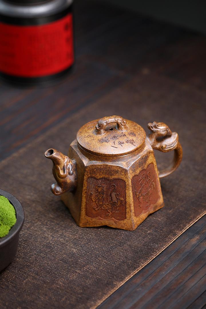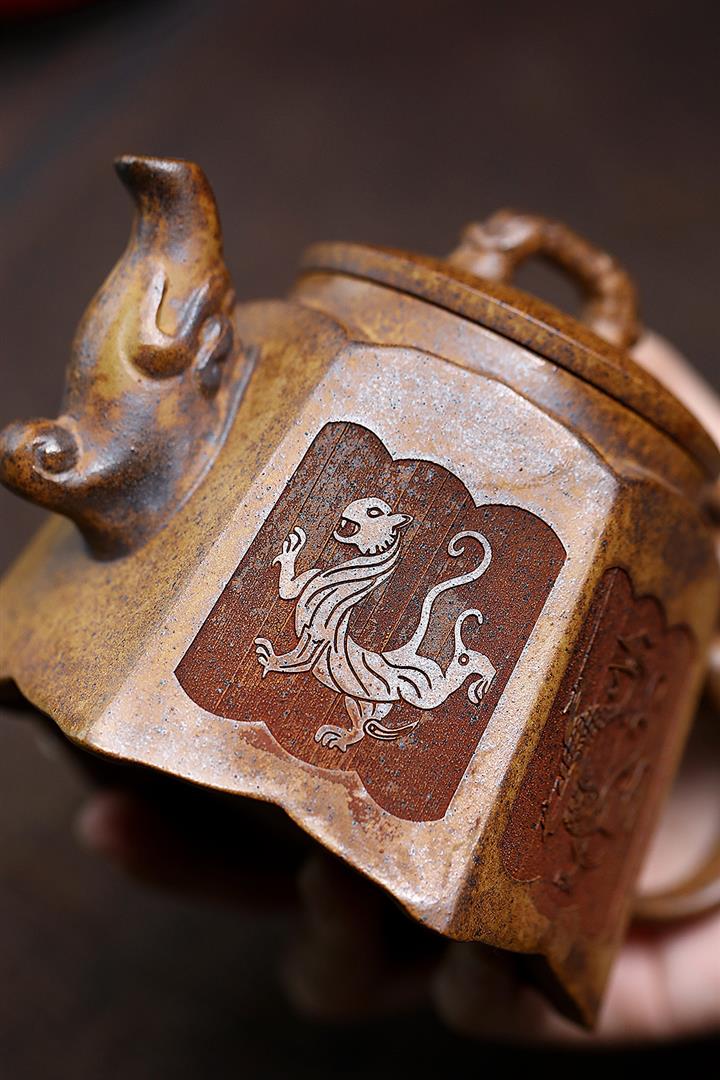 400cc原礦高溫段泥四神獸六方茶壺POT9081