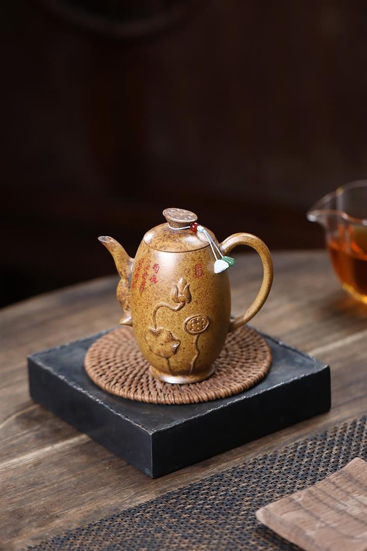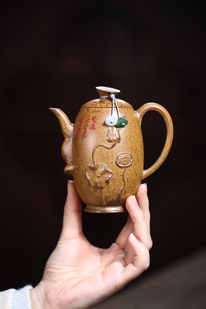 原礦石黃泥手工錦上添花太湖石金鐘茶壺POT6968