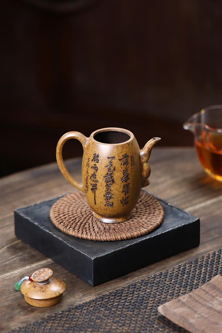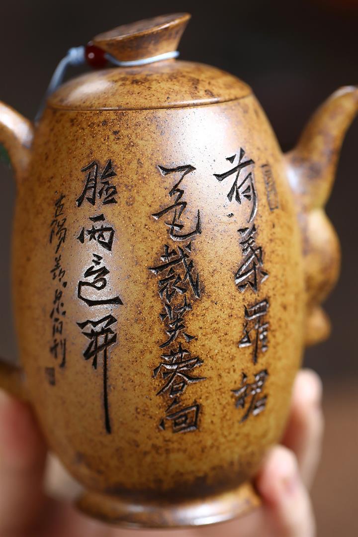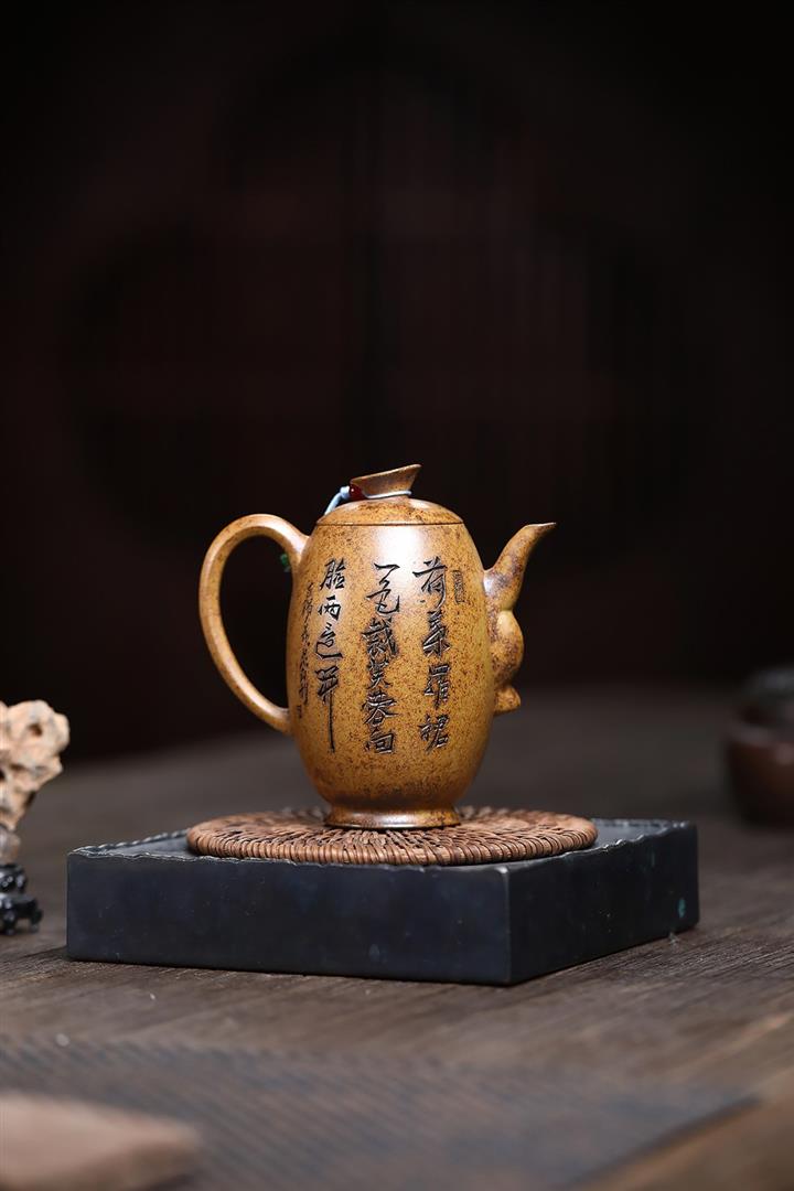 原礦米黃段泥手工刻墨香梅花乳香西施壺POT6966