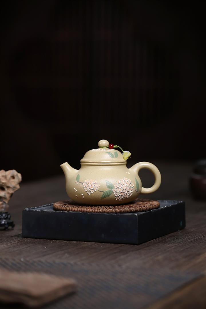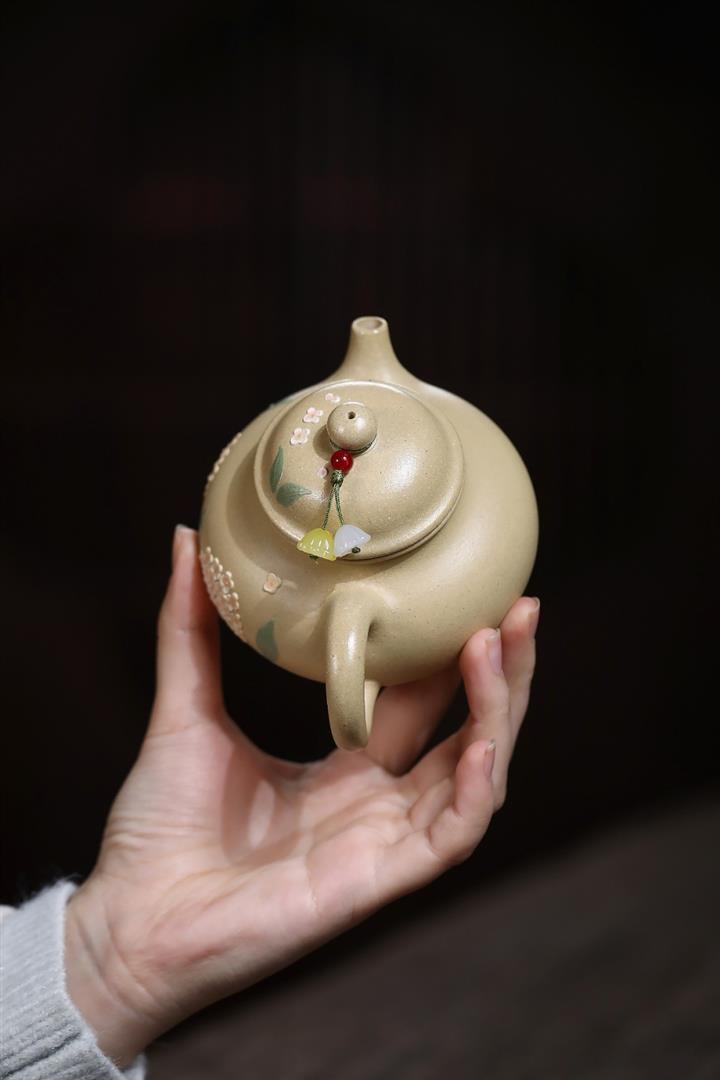 【作品介紹】此款壺形線條流暢,壺把,壺嘴,壺身壹氣呵成栩栩如生,是收藏把玩的好壺,泥料色澤古樸典雅,日久使用,漸露鋒芒,養成變化快,溫潤莊重,用其泡茶,使用的年代久,壺身就溫潤,泡出來的茶湯也就醇郁芳馨。