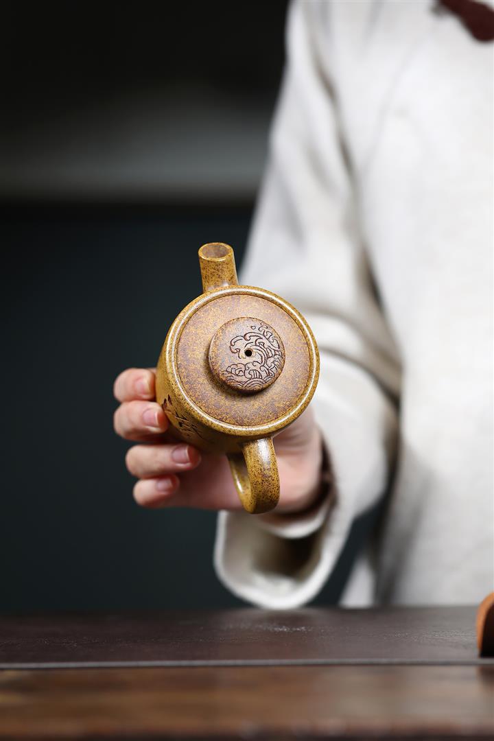 300cc原礦玄鐵石黃黑料報春茶壺POT8297