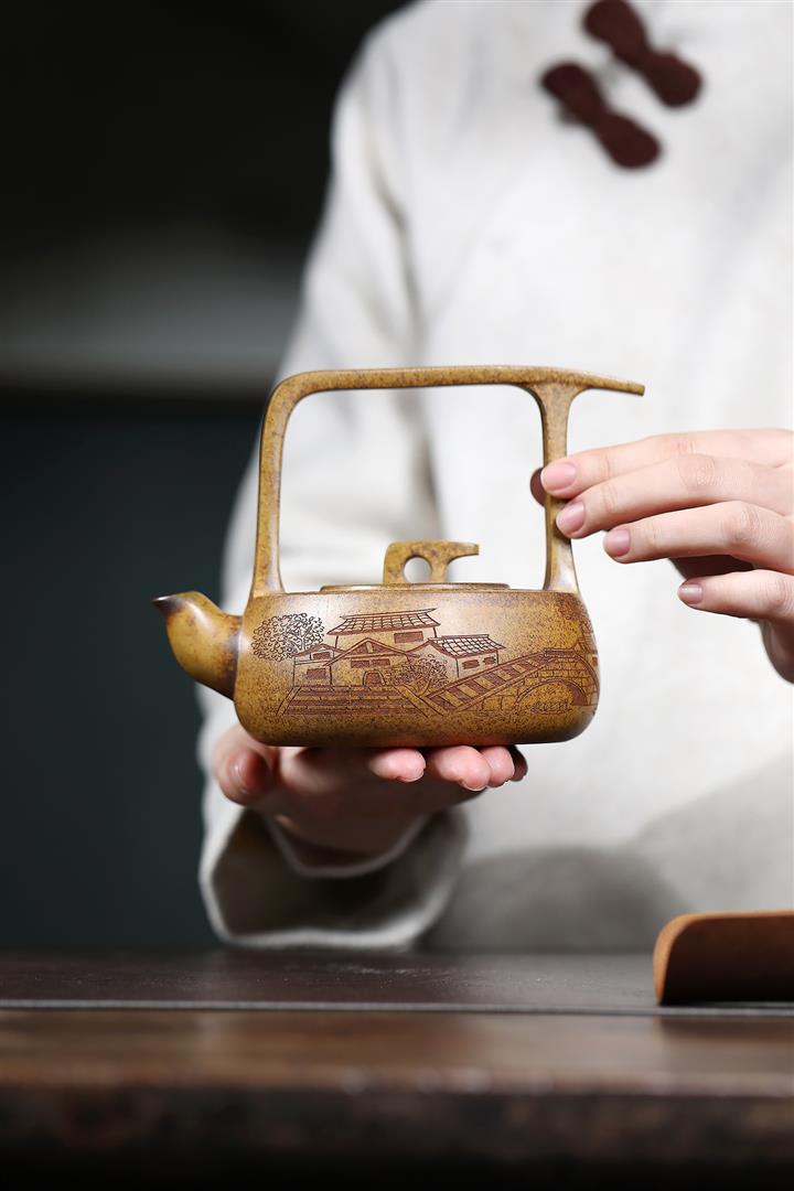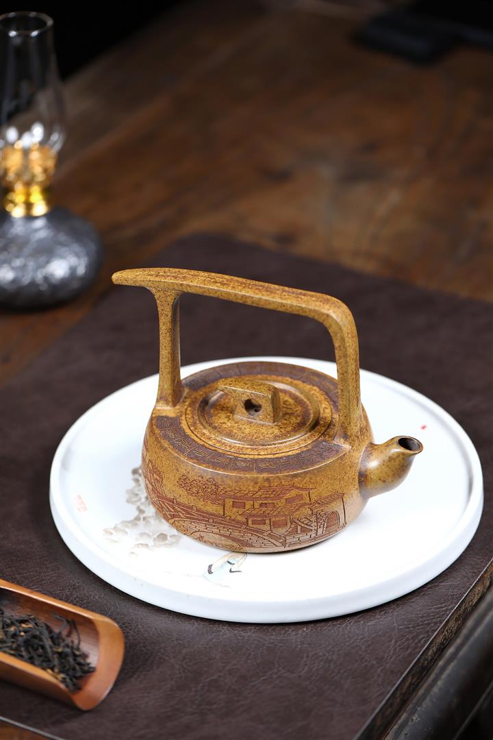 340cc原礦龍骨金砂柴燒壹帆風順提梁壺POT9101