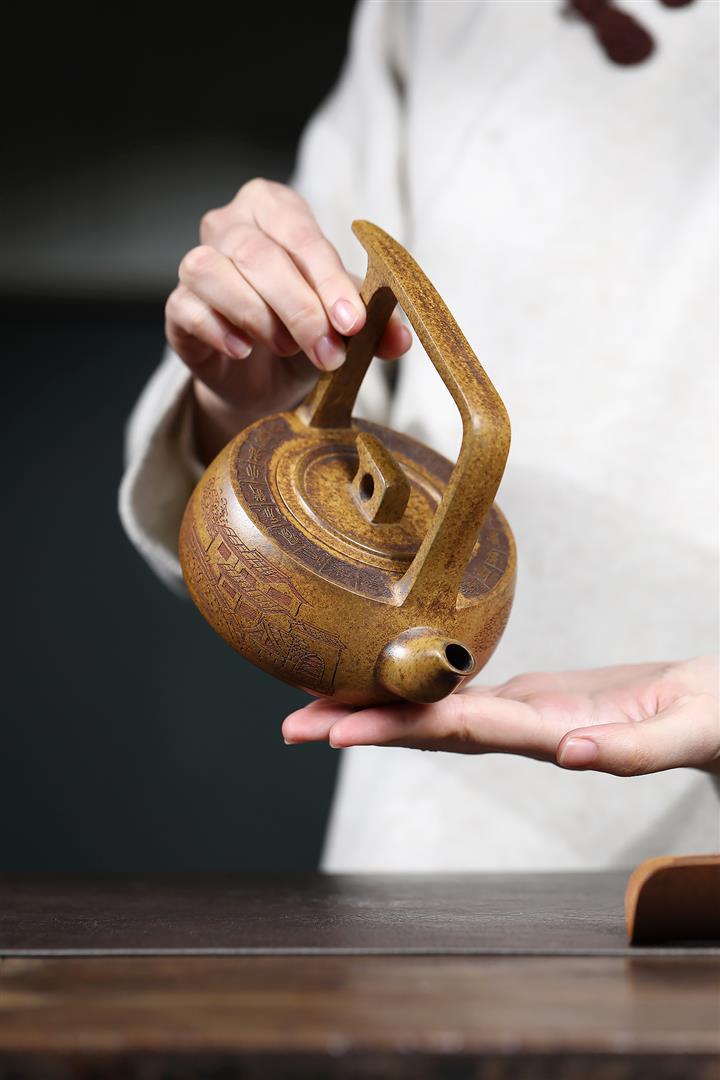 金鐘原礦龍背青手工刻字紫砂壺POT3933