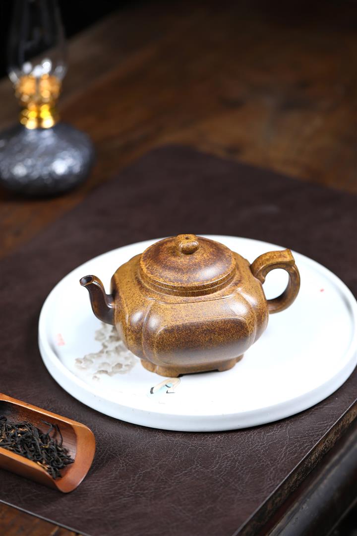 【泥料特點】砂土氣重,似淳實農民,日久使用,漸露鋒芒,養成變化,溫潤莊重。紫砂是壹種雙重氣孔結構的多孔性材質,氣孔微細,密度高。用紫砂壺沏茶,不失原味,且香不渙散,得茶之真香真味。紫砂使用越久,壺身色澤越發光亮照人,氣韻溫雅。紫砂壺長久使用器身會因撫摸擦拭,變得越發溫潤光澤。
