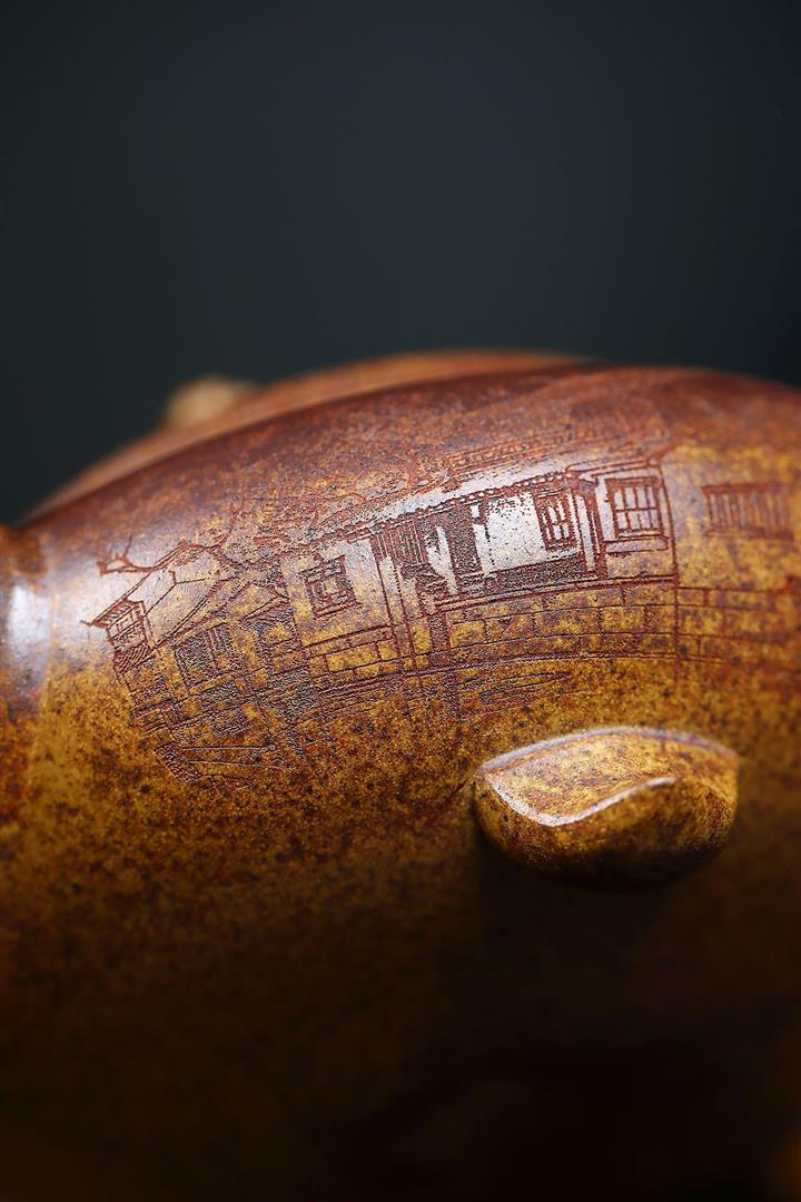 手工紫砂壺證書全陳腐底槽清金豬慶春POT4055