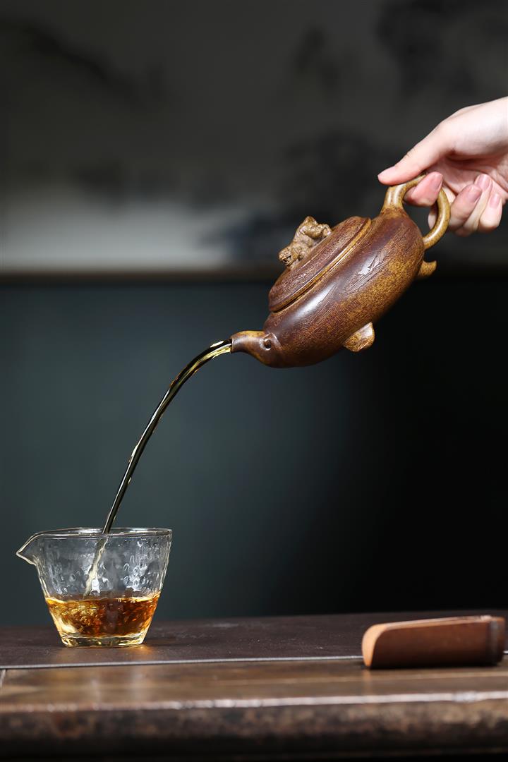 【泥料特點】砂土氣重,似淳實農民,日久使用,漸露鋒芒,養成變化,溫潤莊重。紫砂是壹種雙重氣孔結構的多孔性材質,氣孔微細,密度高。用紫砂壺沏茶,不失原味,且香不渙散,得茶之真香真味。紫砂使用越久,壺身色澤越發光亮照人,氣韻溫雅。紫砂壺長久使用器身會因撫摸擦拭,變得越發溫潤光澤。