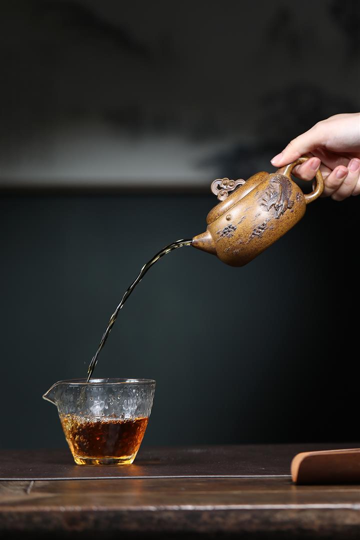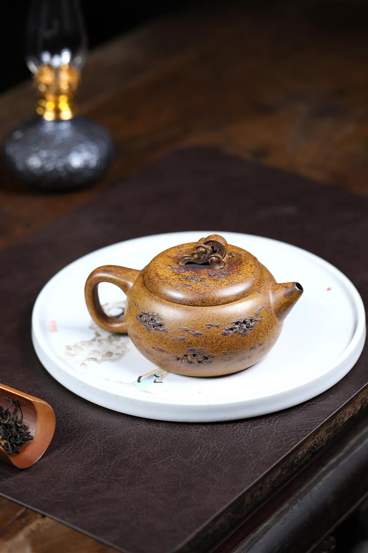 【泥料特點】砂土氣重,似淳實農民,日久使用,漸露鋒芒,養成變化,溫潤莊重。紫砂是壹種雙重氣孔結構的多孔性材質,氣孔微細,密度高。用紫砂壺沏茶,不失原味,且香不渙散,得茶之真香真味。紫砂使用越久,壺身色澤越發光亮照人,氣韻溫雅。紫砂壺長久使用器身會因撫摸擦拭,變得越發溫潤光澤。