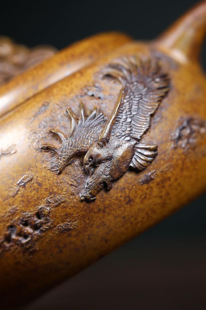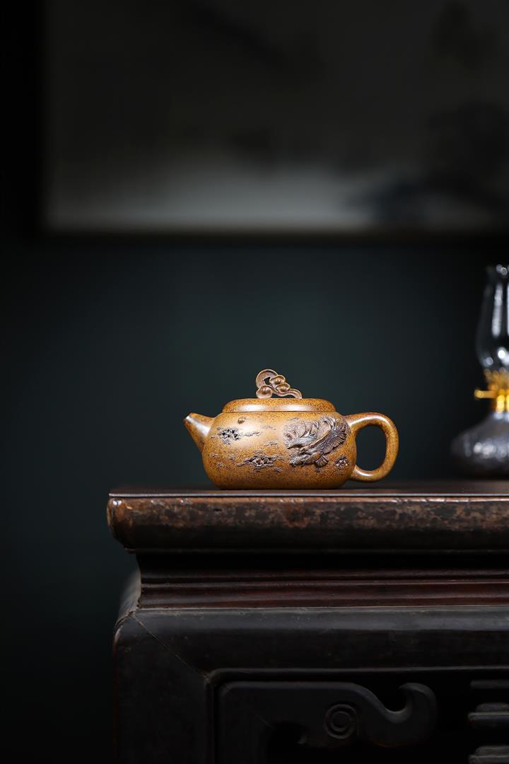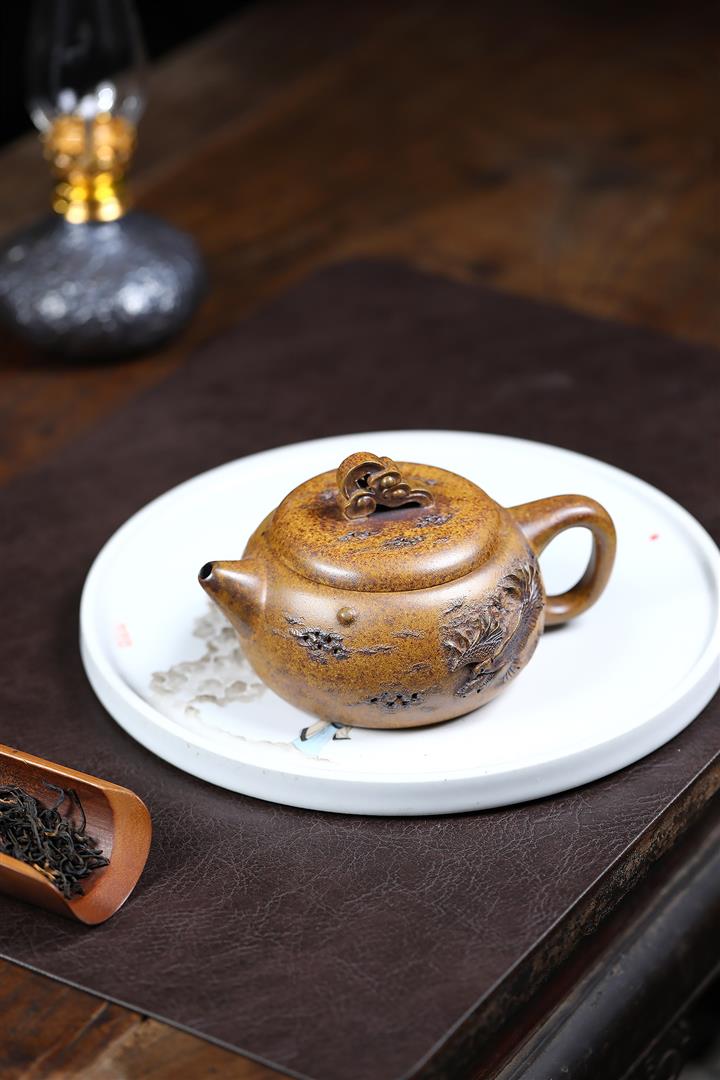 紫砂壺名家老紫泥刻繪周盤壺POT4009