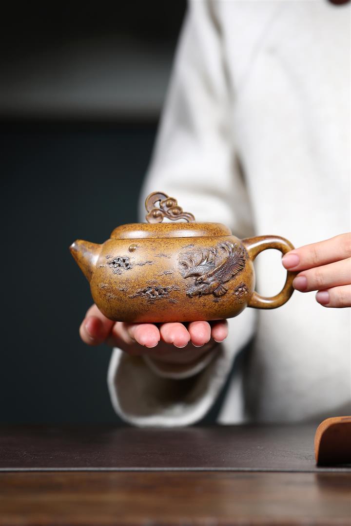 250cc原礦高溫柴燒龍骨金砂大展宏圖文旦茶壺POT9112