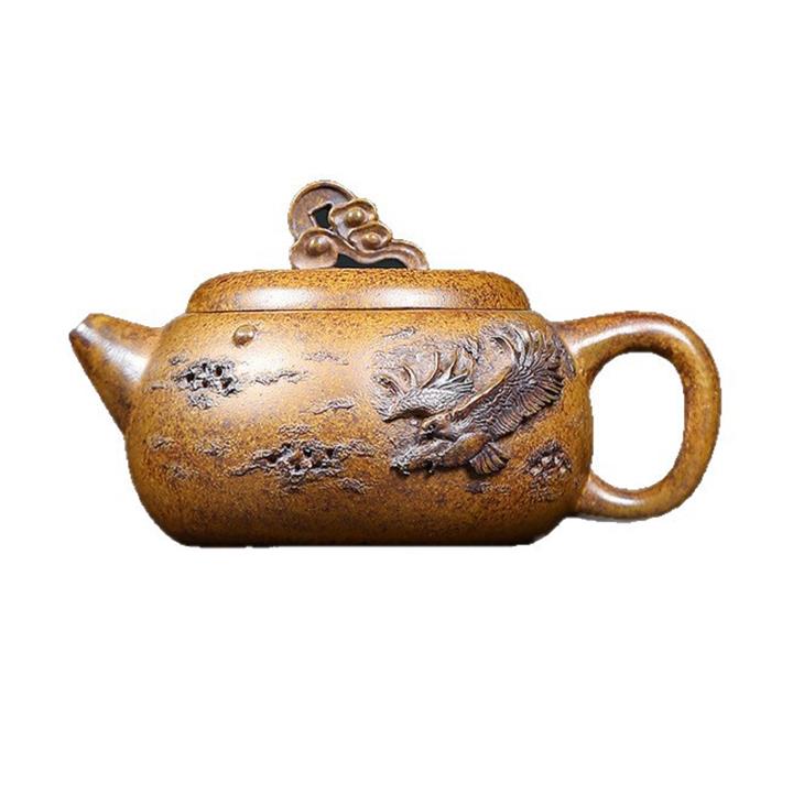 原礦紫砂壺龍尊貔貅純全手工刻繪紫泥泡茶壺POT4013